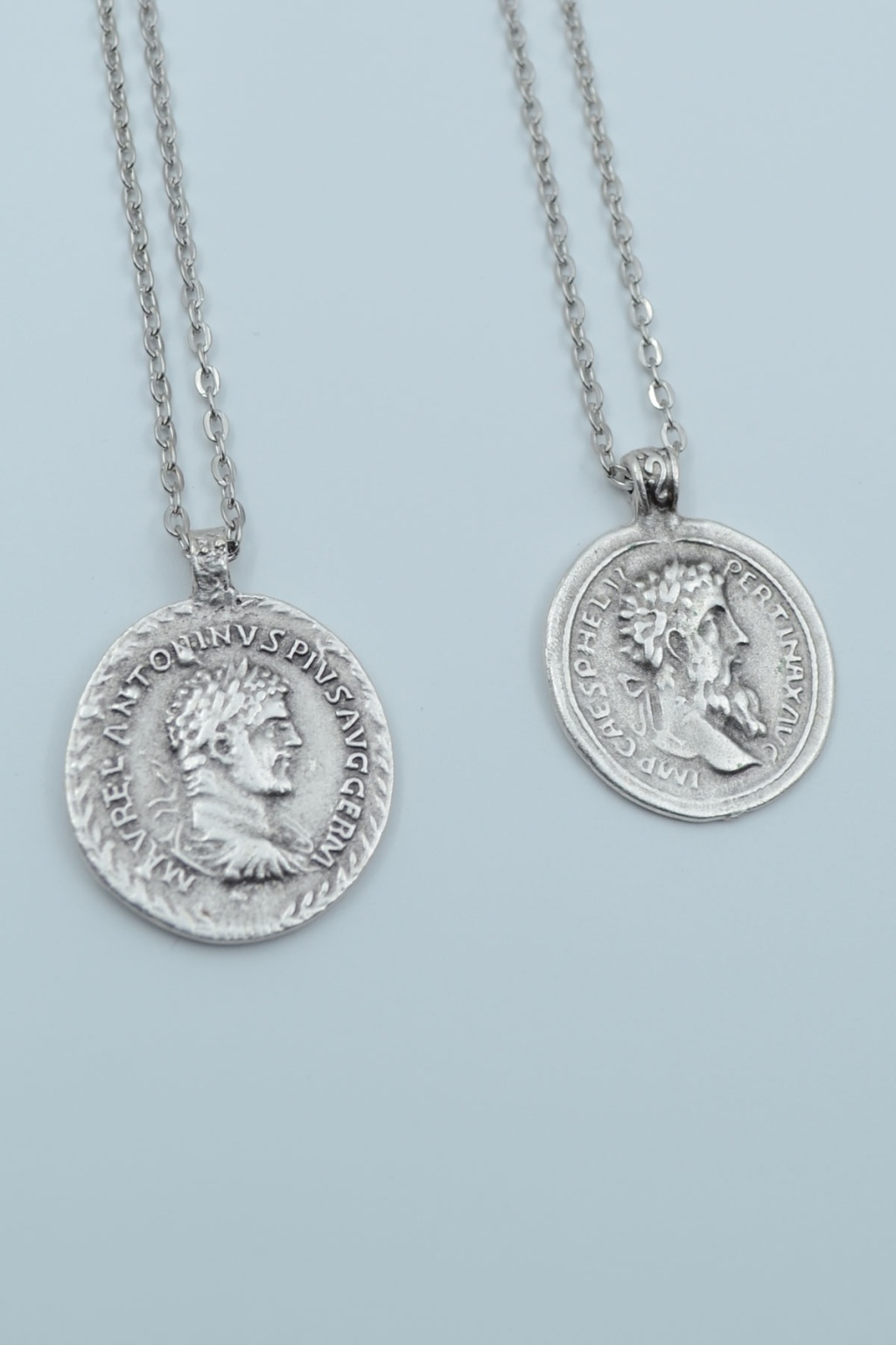 2’li Antik Roma Sikkesi Madalyon Gümüş Kaplama Kolye Seti