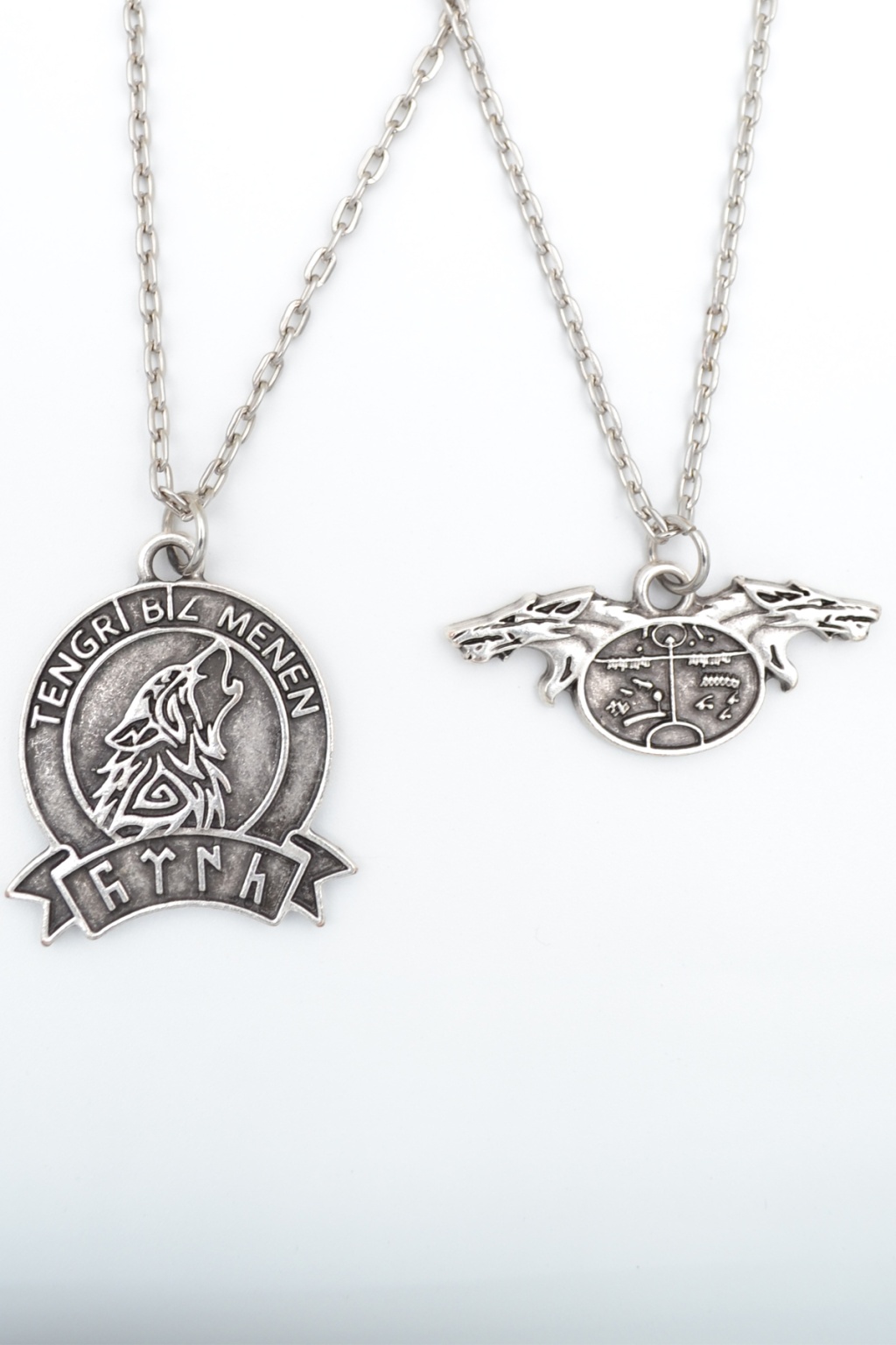 2'li Kam Şaman Davulu - Tengri Biz Menen Bozkurt Gümüş Kaplama Kolye Seti