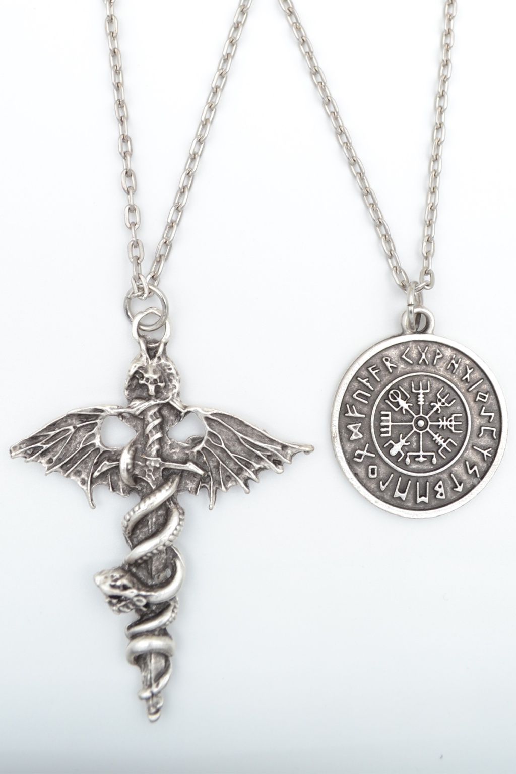 2'li Kılıç Yarasa Yılan - Viking Pusula Gümüş Kaplama Kolye Seti
