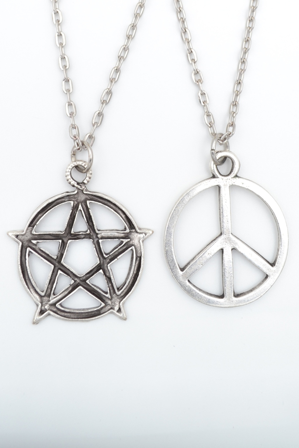 2'li Pentagram Wicca - Barış İşareti Peace Gümüş Kaplama Kolye Seti