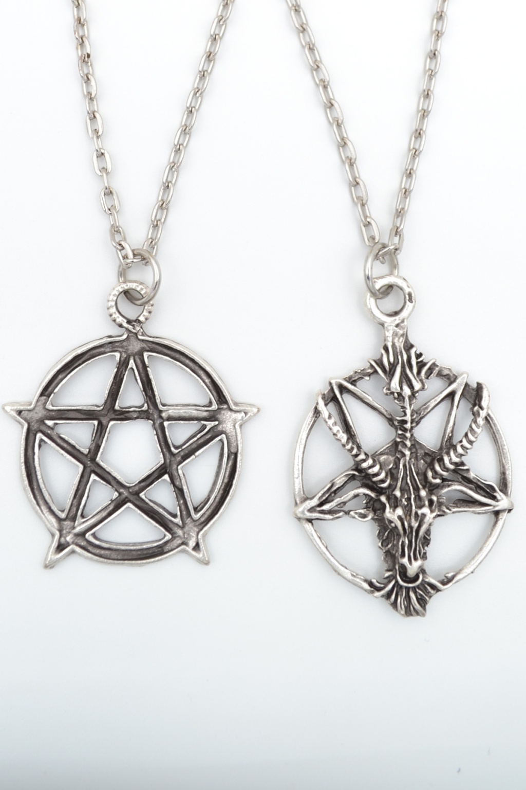 2'li Ters Pentagram Keçi Kafası - Wicca Gümüş Kaplama Kolye Seti