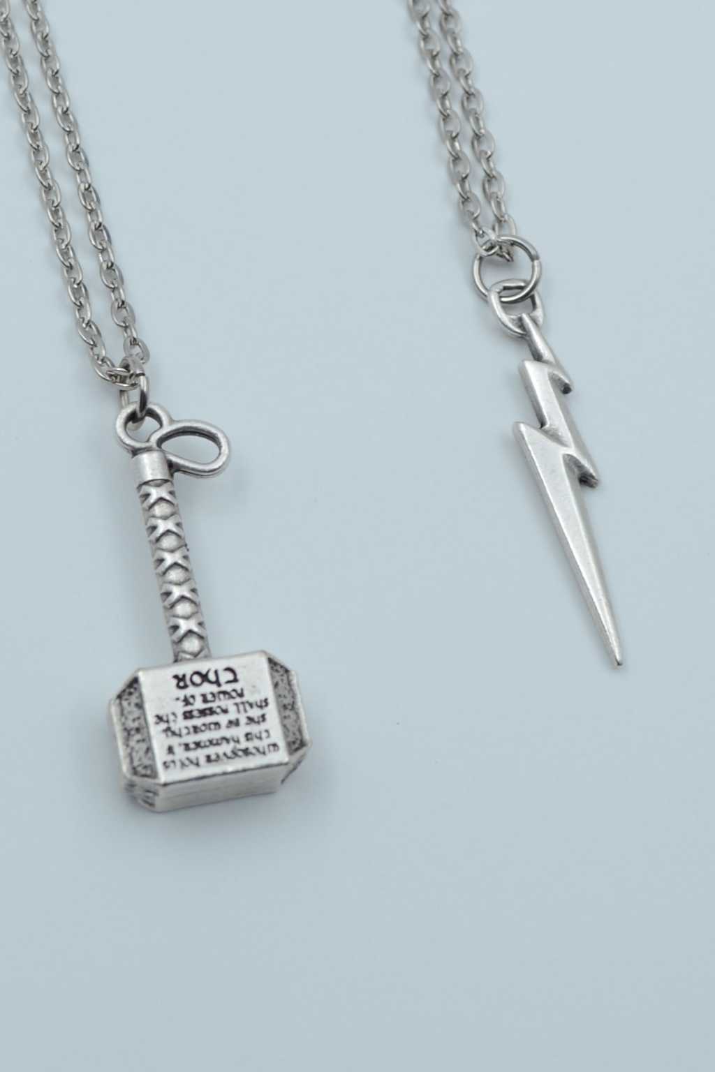 2'li Thor Çekiç Şimşek Gümüş Kaplama Kolye Seti