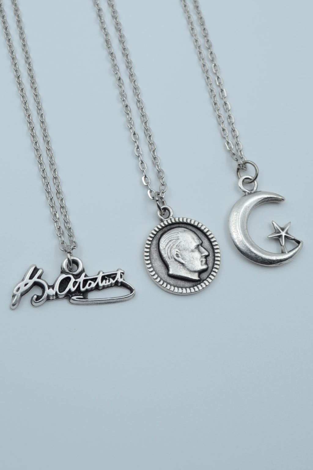 3'lü Atatürk İmza Madalyon Ay Yıldız Gümüş Kaplama Kolye Seti