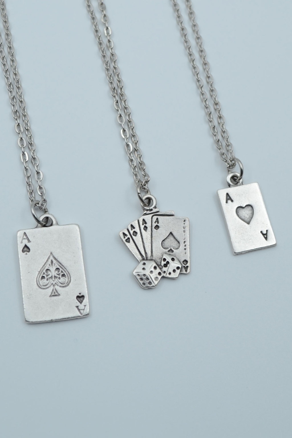 3'lü Full As İskambil Deste Zar Gümüş Kaplama Kolye Seti