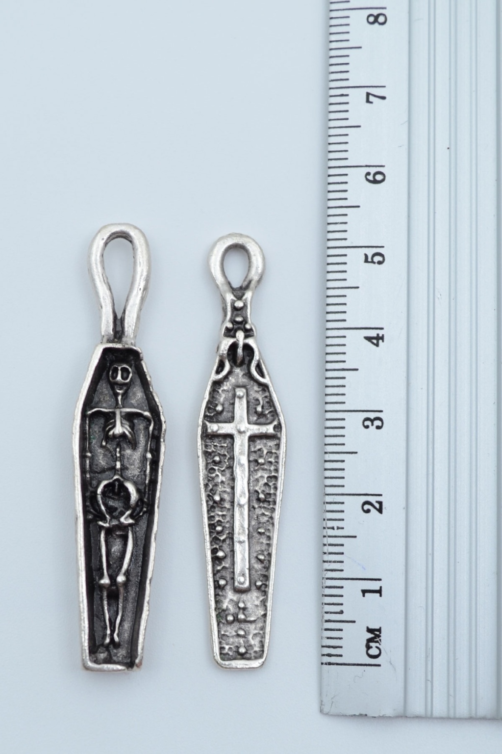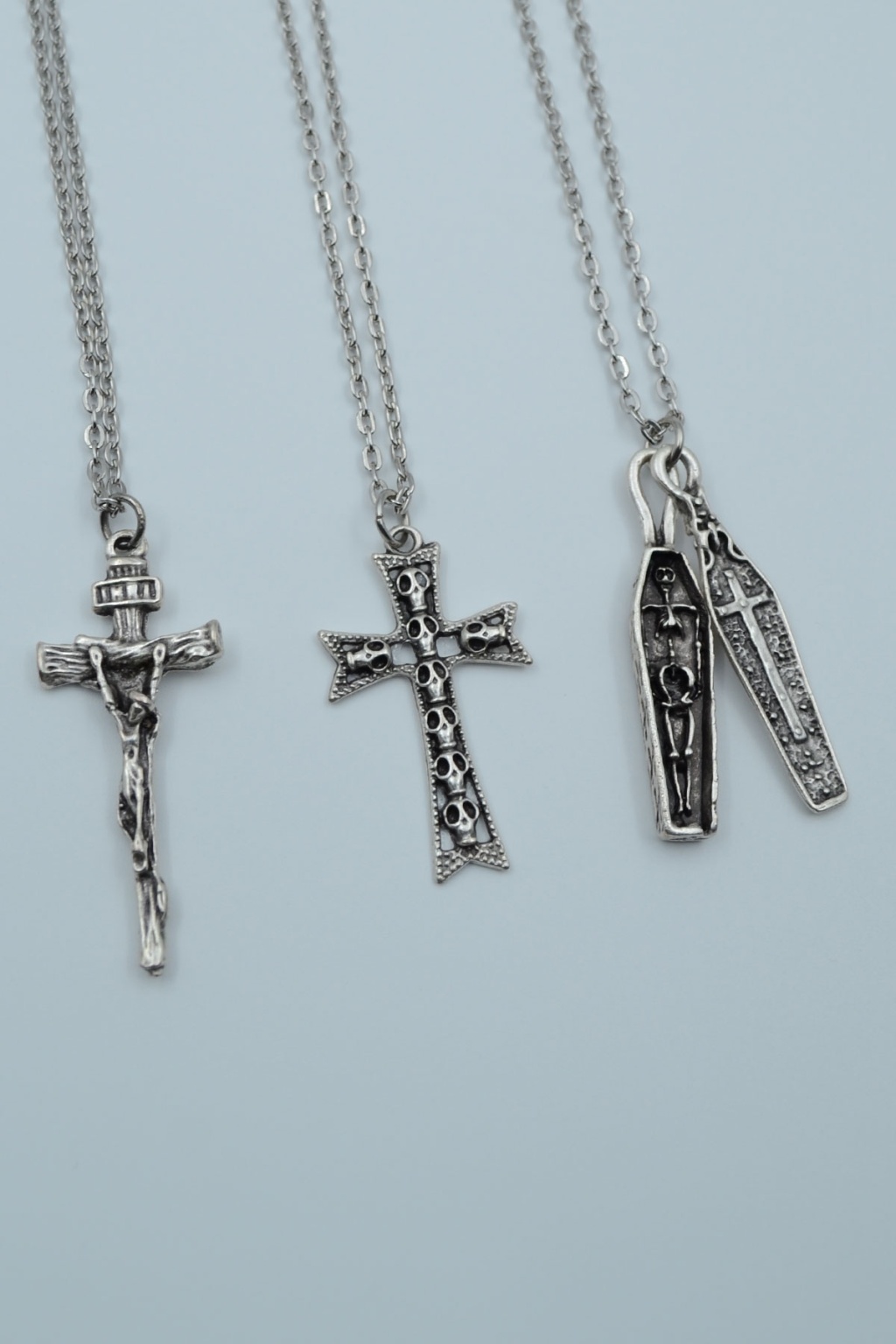 3'lü Hz. İsa Haç Kuru Kafa Tabut Gümüş Kaplama Kolye Seti