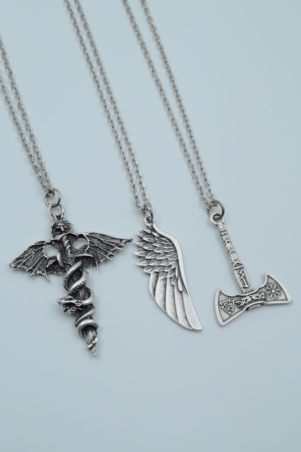Zamak malzeme üzerine antik gümüş kaplama ile özel tasarımlarımız, artık 3’lü Premium Set olarak sizlerle! Sevdiğiniz modelleri bir araya getirdiğimiz bu özel pakette, 3 adet Kolye Ucu ve her biri 60 cm uzunluğunda 3 adet İthal Silver Renk Düz Ezme Zincir bulunmaktadır.