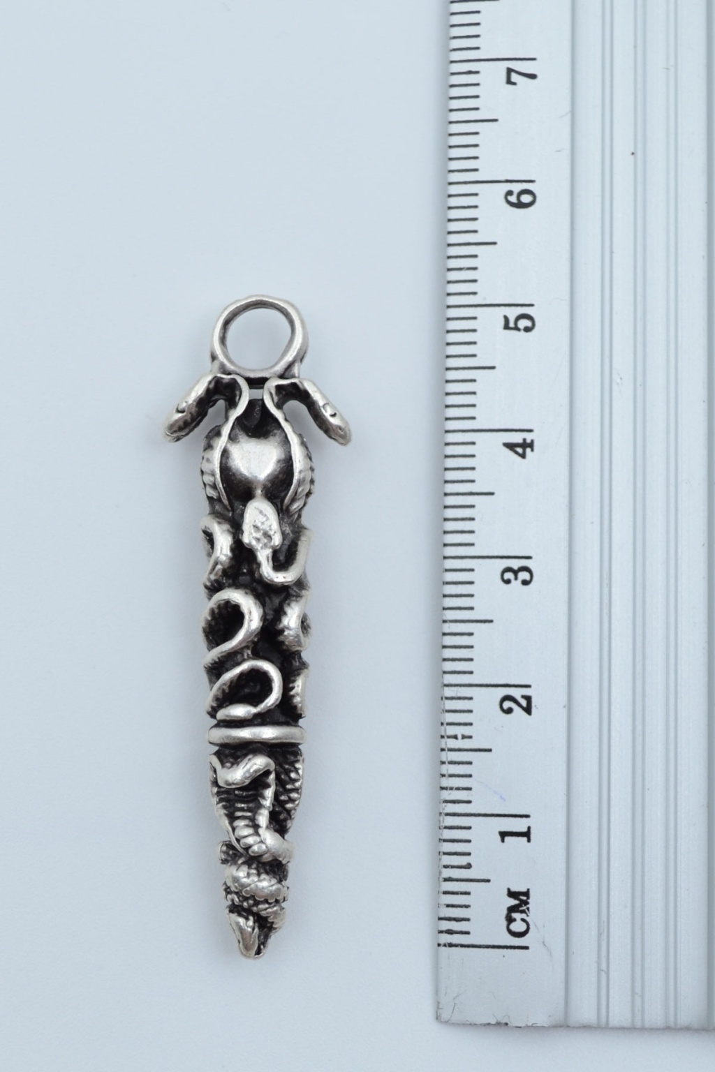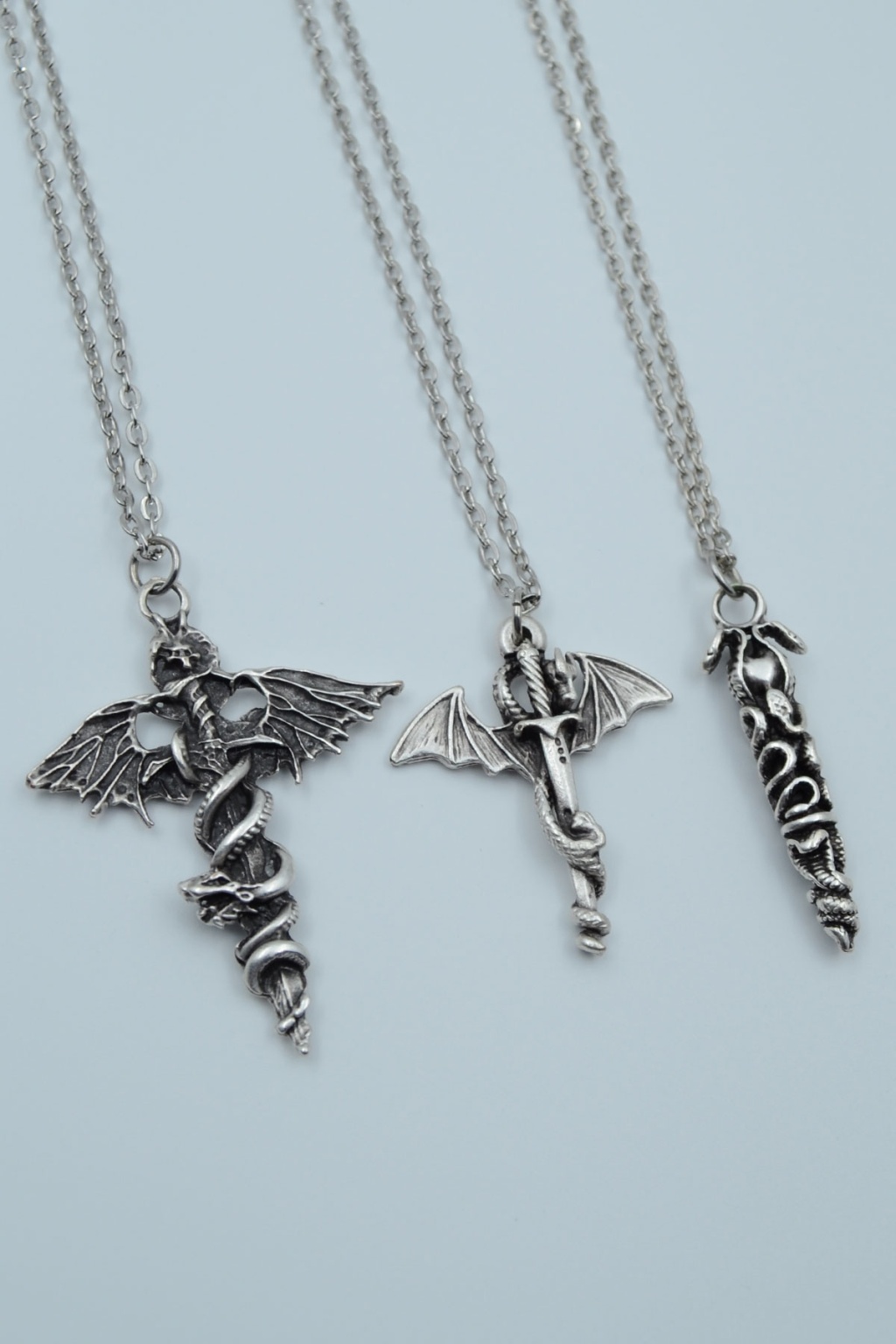 3'lü Yarasa Yılan Kılıç Ejderha Kılıç Yılanlı Çubuk Gümüş Kaplama Kolye Seti