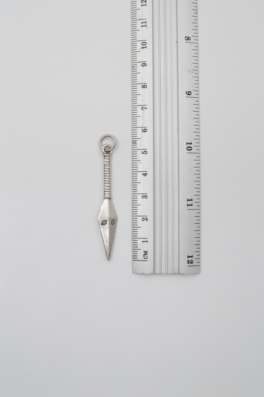 **Anime Ninja Kunai **, Siyah Deri İp Kolye ürün grubuna ait, Antik Gümüş Kaplama malzemeden üretilmiştir. Bu özel parça, 5,3 cm yüksekliğe ve 1 cm genişliğe sahiptir. Antik Gümüş Kaplama kaplaması ile göz alıcı bir görünüm sunar ve Unisex için tasarlanmıştır. 60 cm uzunluğundaki zinciriyle tamamlanmıştır.