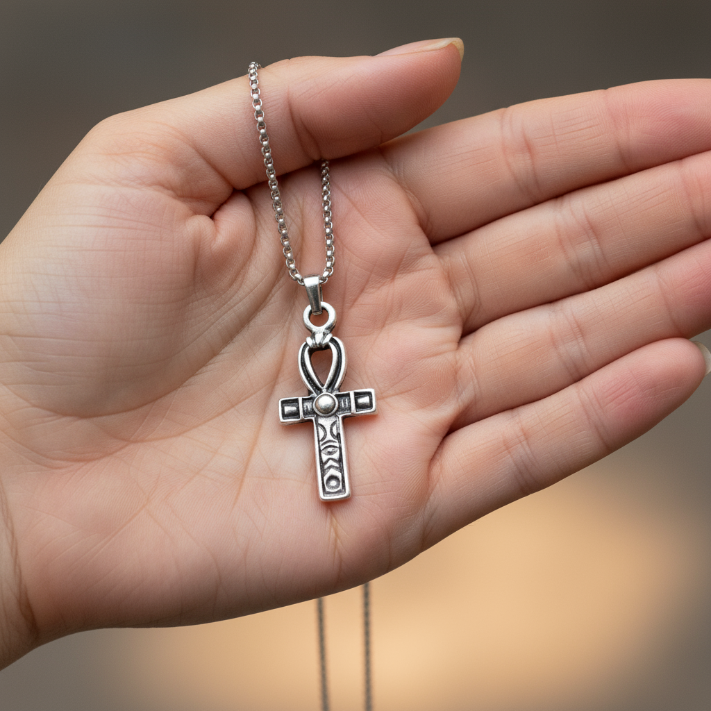 Alooya Ankh Anahtarı (Nil’in Anahtarı) Kolyesi (Örme Zincir)
