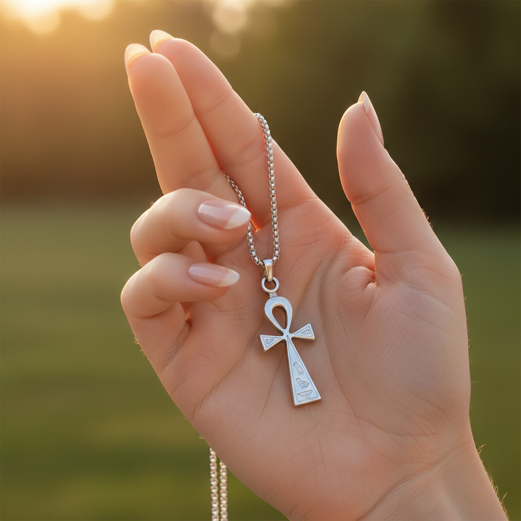 Alooya Ankh Anahtarı / Nil’in Anahtarı Kolyesi, Antik Mısır’ın gizemli ruhunu modern stile taşıyor. “Yaşamın Anahtarı” olarak bilinen Ankh sembolü, hem ruhsal güç hem de korunma anlamlarıyla yüzyıllardır kullanılan kutsal bir motiftir. Zamak malzemeden üretilen kolye ucu, Antik Gümüş Kaplaması sayesinde zarif, vintage ve güçlü bir görünüme sahiptir.