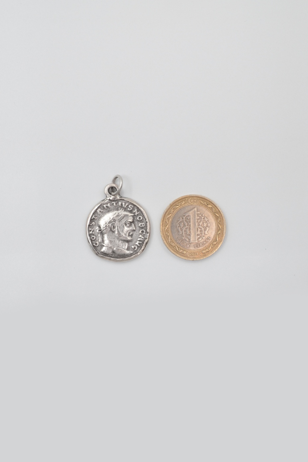 **Antik Roma Dönemi Sikke **, Örme Zincir Kolye ürün grubuna ait, Antik Gümüş Kaplama malzemeden üretilmiştir. Bu özel parça, 3,1 cm yüksekliğe ve 2,1 cm genişliğe sahiptir. Antik Gümüş Kaplama kaplaması ile göz alıcı bir görünüm sunar ve Unisex için tasarlanmıştır. 60 cm uzunluğundaki zinciriyle tamamlanmıştır.