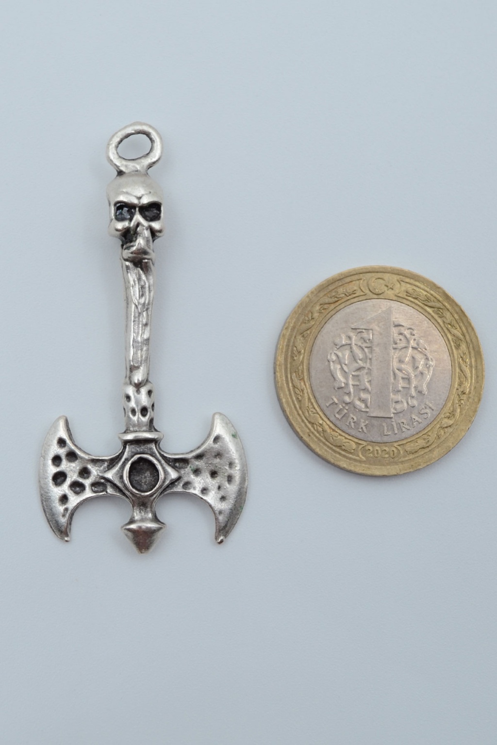 Zamak malzemeden üretilen bu Balta Kolye Ucu, Antik Gümüş Kaplamasıyla şıklık ve dayanıklılık sunar.5,3 cm x 2,6 cm boyutları ve 6,33 gr ağırlığıyla koleksiyonlar için özel bir parça olan tasarım, 60 cm uzunluğunda İthal Silver Renk Düz Ezme Zincir ile birlikte gelmektedir. Hem modern hem de klasik tarzlara uyum sağlayan bu kombinasyon, kullanıma hazır şık bir aksesuar olarak öne çıkıyor. Sağlam Düz Ezme Zincir yapısı ile günlük kullanımda pratiklik ve uzun ömürlülük vadeden bu set, hem erkek hem de kadın takı severler için ideal bir seçimdir.