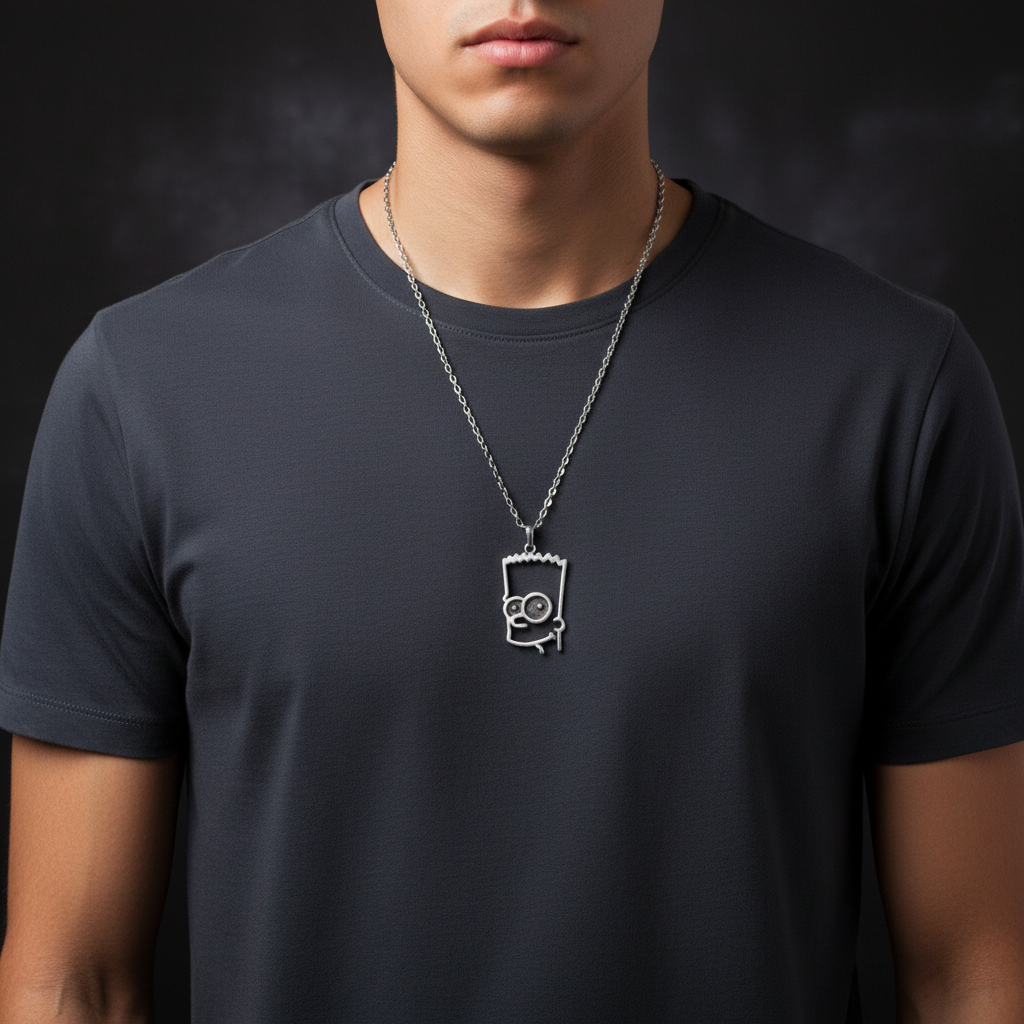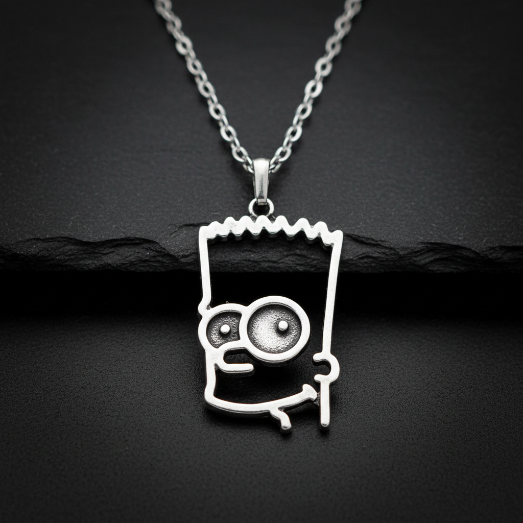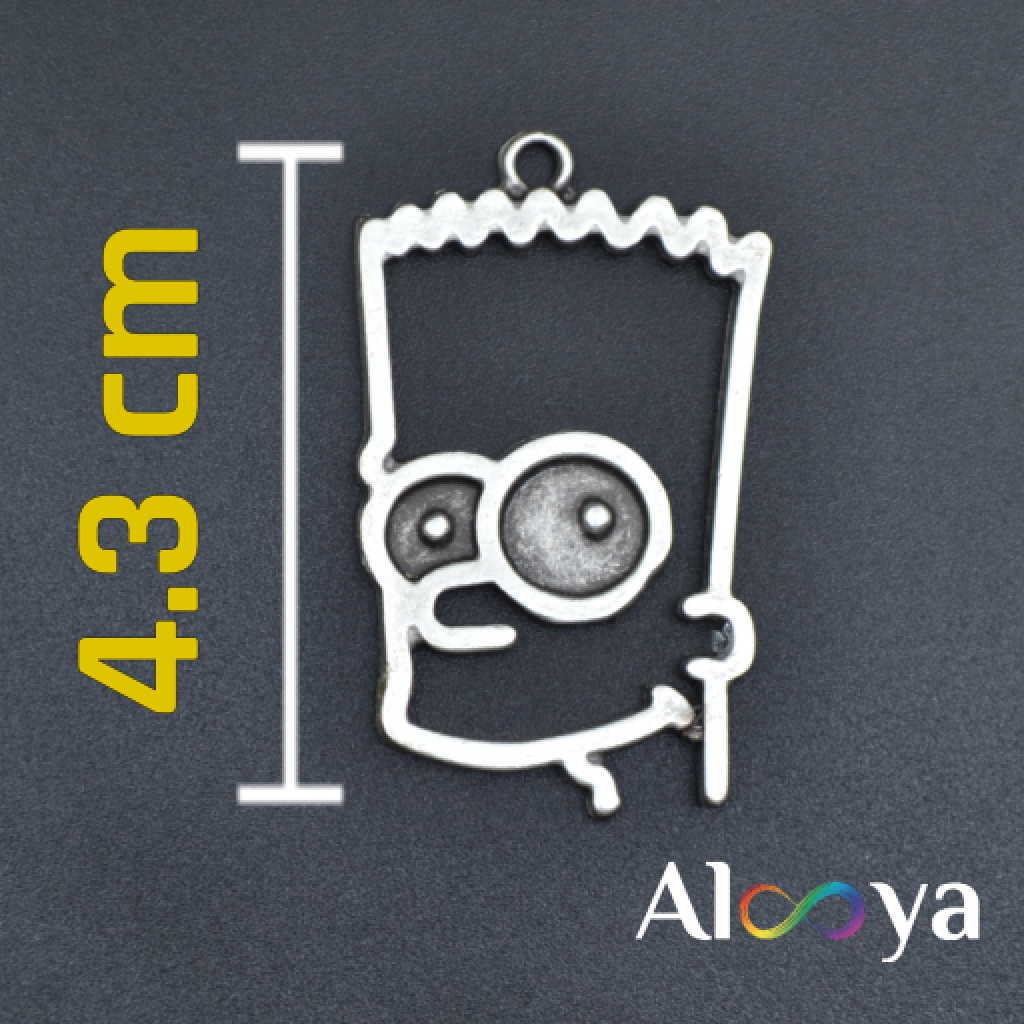 Bart Simpson kolye ucu, antik gümüş kaplama yüzeyi sayesinde hem şık hem