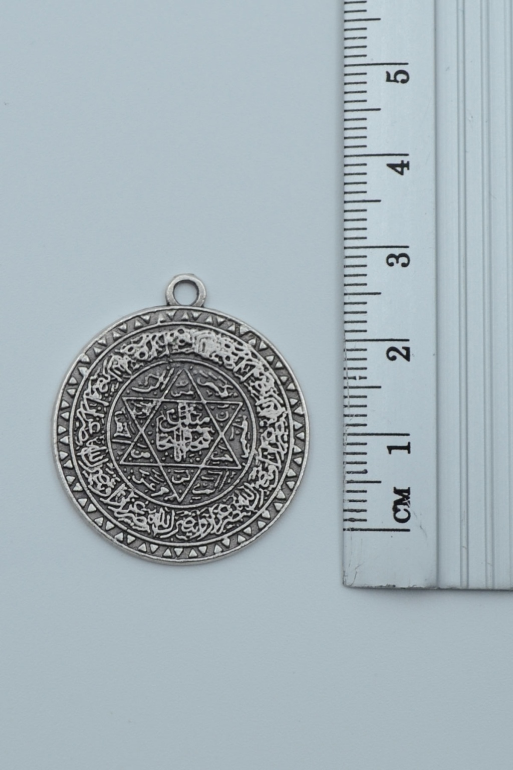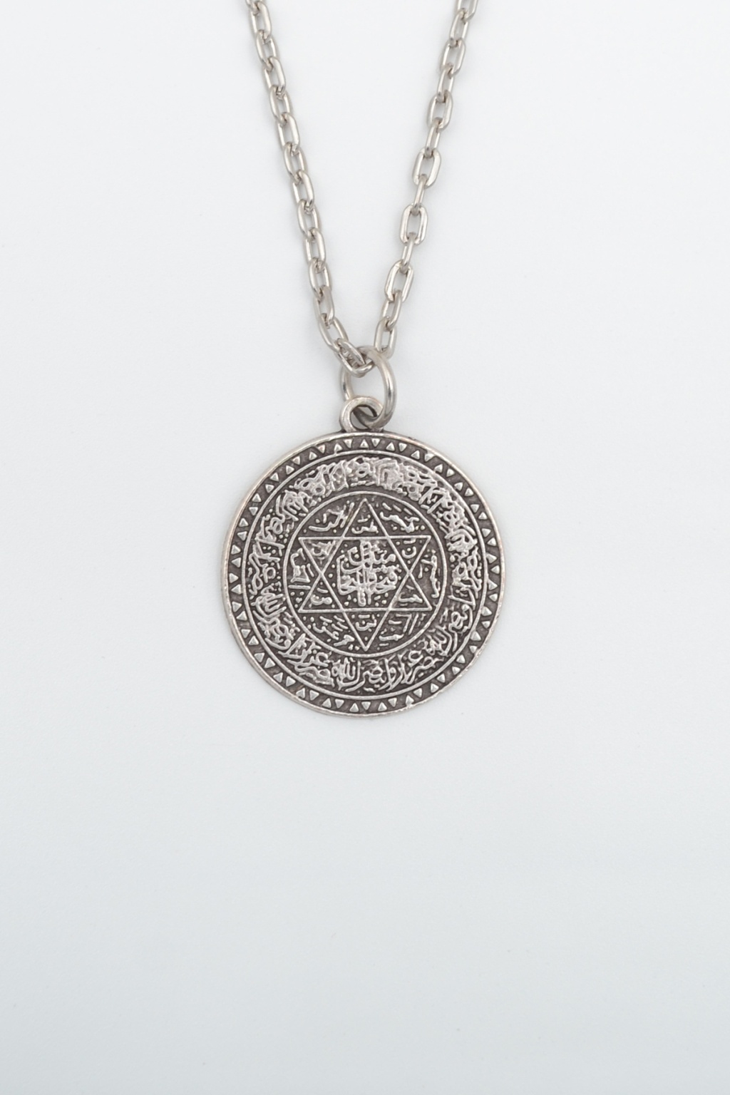 Zamak malzemeden üretilen bu Davut Yıldızı - Süleyman Tılsım Mührü Kolye Ucu, Antik Gümüş Kaplamasıyla şıklık ve dayanıklılık sunar.3,1 cm x 2,8 cm boyutları ve 4,14 gr ağırlığıyla koleksiyonlar için özel bir parça olan tasarım, 60 cm uzunluğunda İthal Silver Renk Düz Ezme Zincir ile birlikte gelmektedir. Hem modern hem de klasik tarzlara uyum sağlayan bu kombinasyon, kullanıma hazır şık bir aksesuar olarak öne çıkıyor. Sağlam Düz Ezme Zincir yapısı ile günlük kullanımda pratiklik ve uzun ömürlülük vadeden bu set, hem erkek hem de kadın takı severler için ideal bir seçimdir.