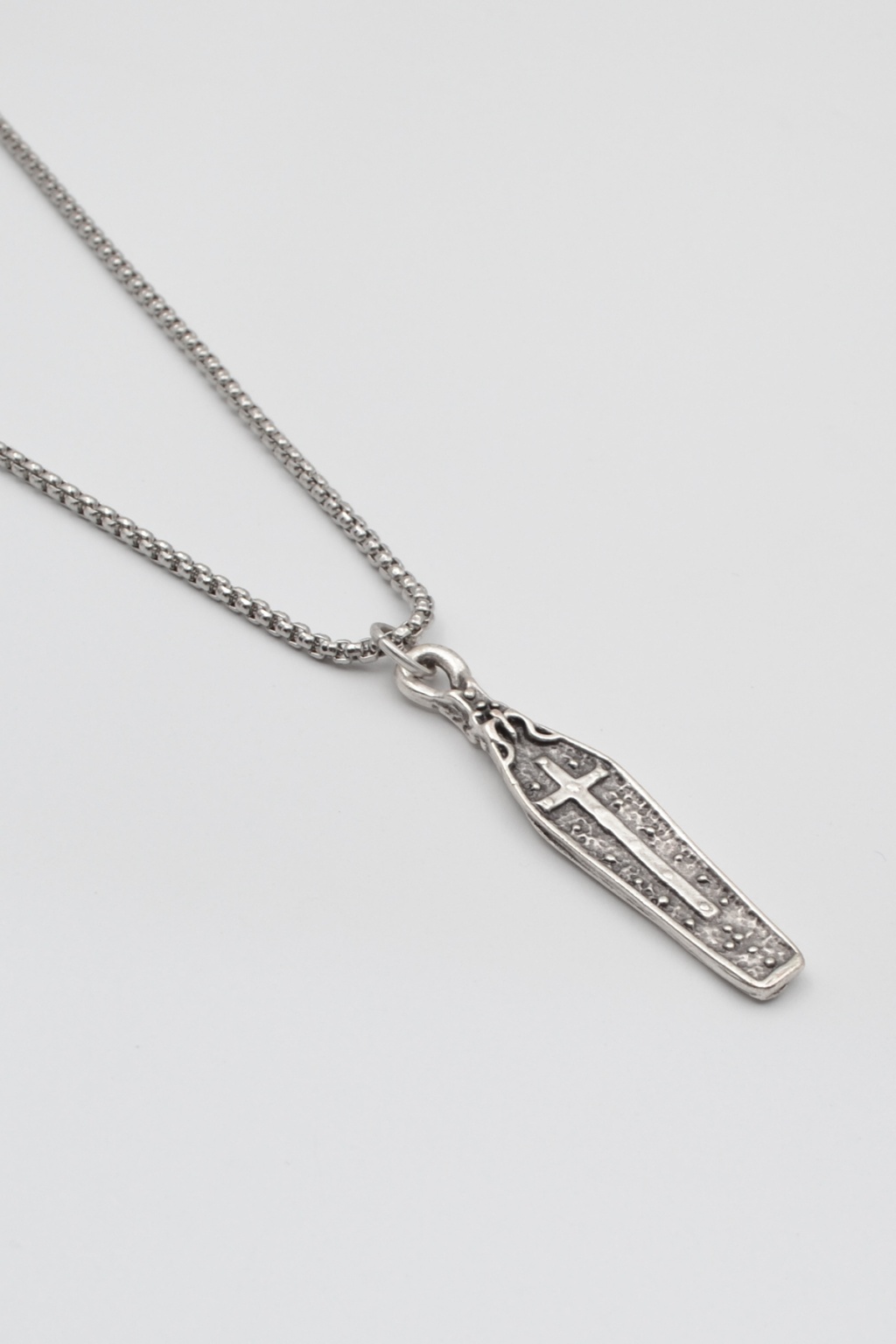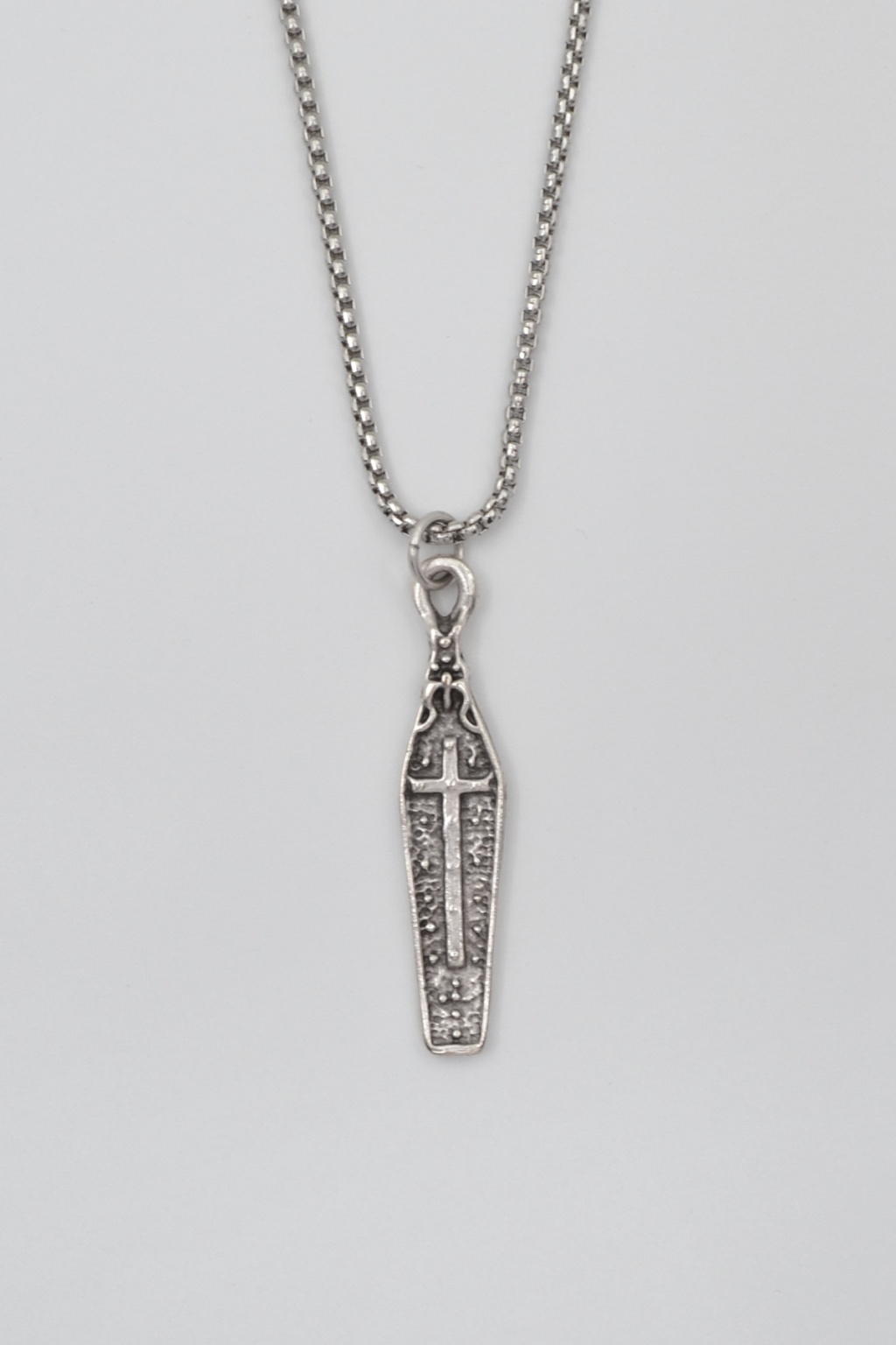 **Gotik Haçlı Tabut **, Örme Zincir Kolye ürün grubuna ait, Antik Gümüş Kaplama malzemeden üretilmiştir. Bu özel parça, 5,3 cm yüksekliğe ve 1,2 cm genişliğe sahiptir. Antik Gümüş Kaplama kaplaması ile göz alıcı bir görünüm sunar ve Unisex için tasarlanmıştır. 60 cm uzunluğundaki zinciriyle tamamlanmıştır.