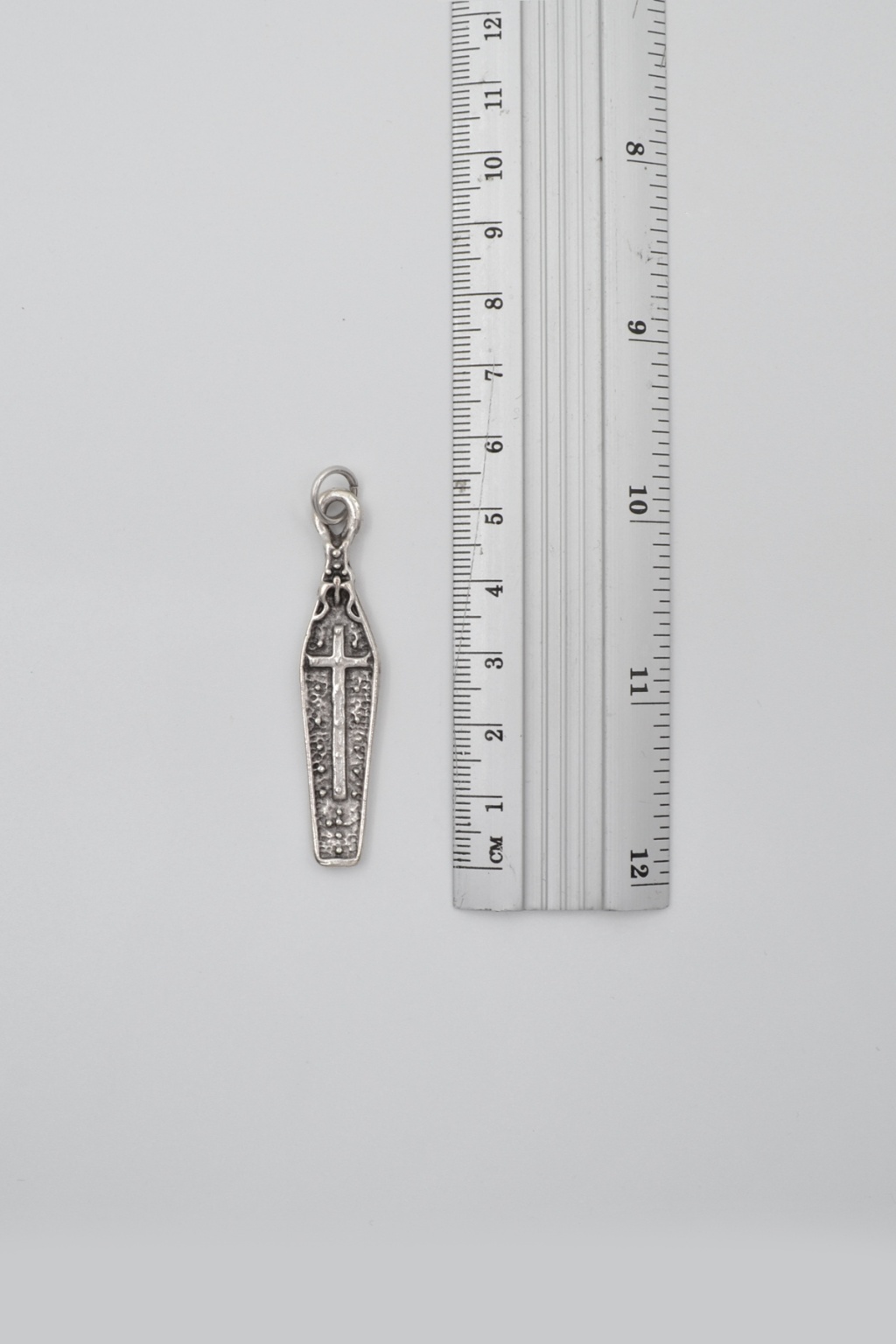 **Gotik Haçlı Tabut **, Siyah Deri İp Kolye ürün grubuna ait, Antik Gümüş Kaplama malzemeden üretilmiştir. Bu özel parça, 5,3 cm yüksekliğe ve 1,2 cm genişliğe sahiptir. Antik Gümüş Kaplama kaplaması ile göz alıcı bir görünüm sunar ve Unisex için tasarlanmıştır. 60 cm uzunluğundaki zinciriyle tamamlanmıştır.