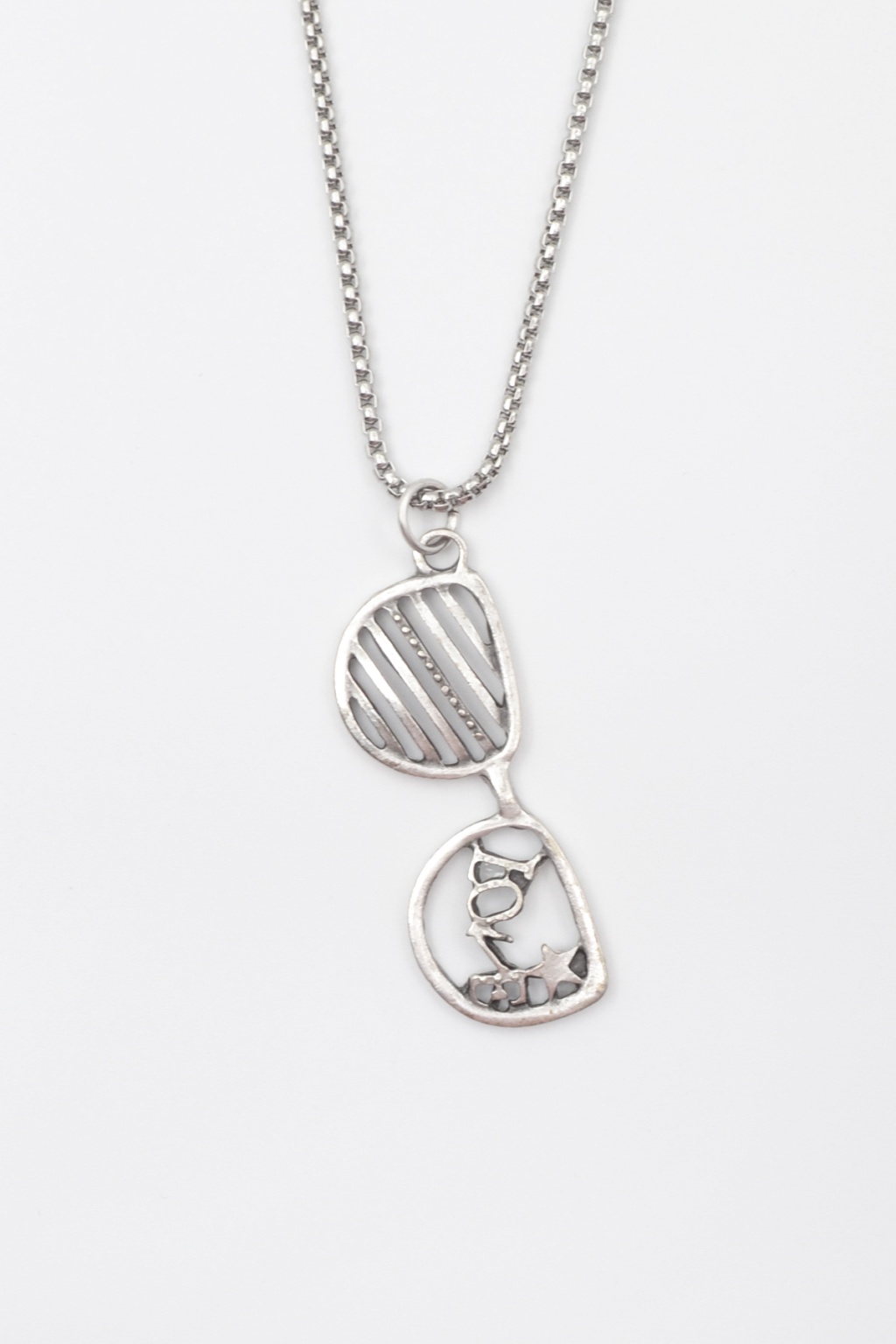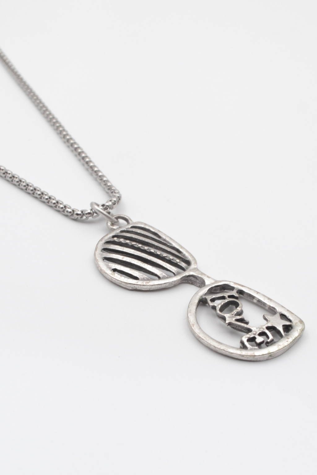 **Gözlük ve Love **, Örme Zincir Kolye ürün grubuna ait, Antik Gümüş Kaplama malzemeden üretilmiştir. Bu özel parça, 5,6 cm yüksekliğe ve 2 cm genişliğe sahiptir. Antik Gümüş Kaplama kaplaması ile göz alıcı bir görünüm sunar ve Unisex için tasarlanmıştır. 60 cm uzunluğundaki zinciriyle tamamlanmıştır.