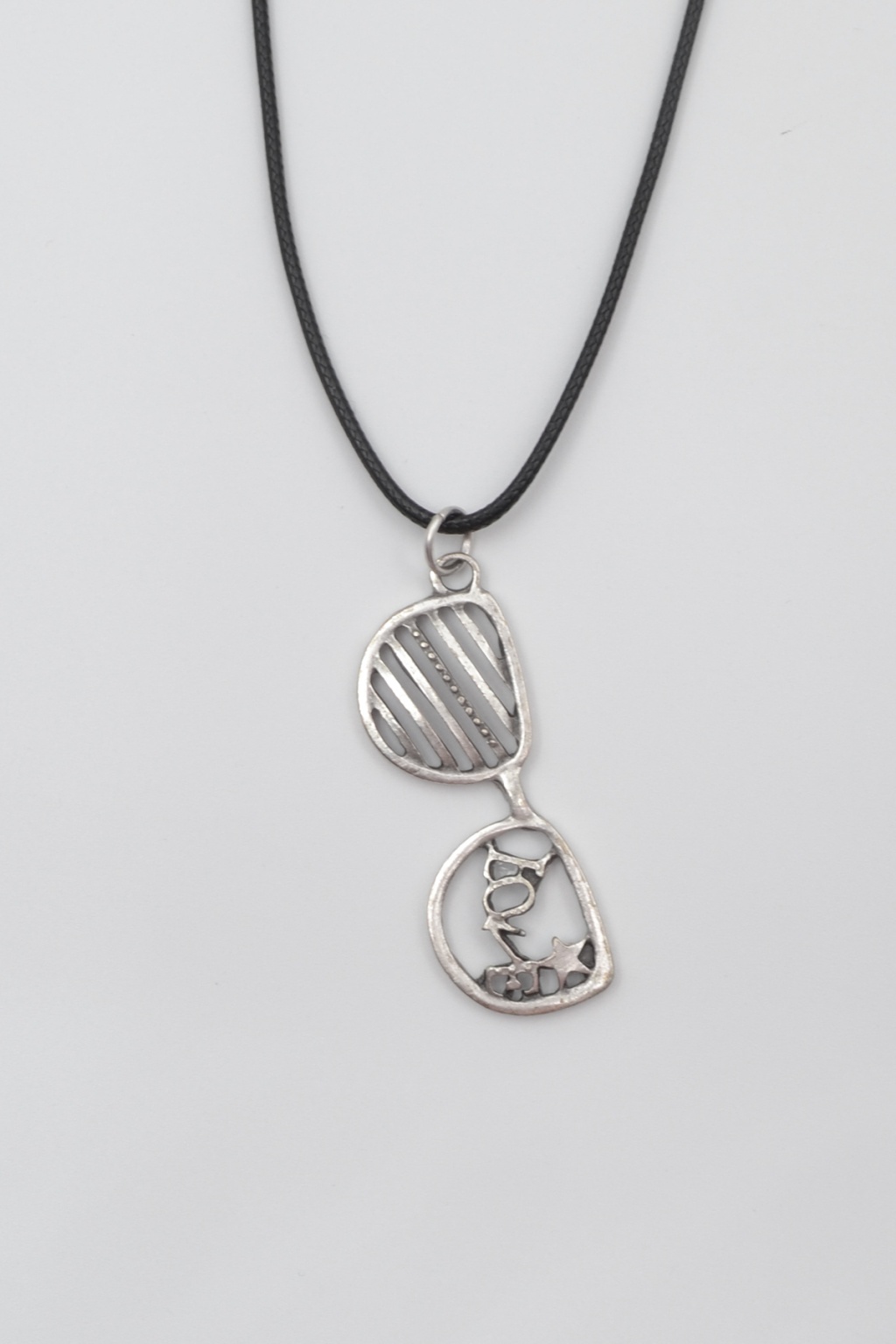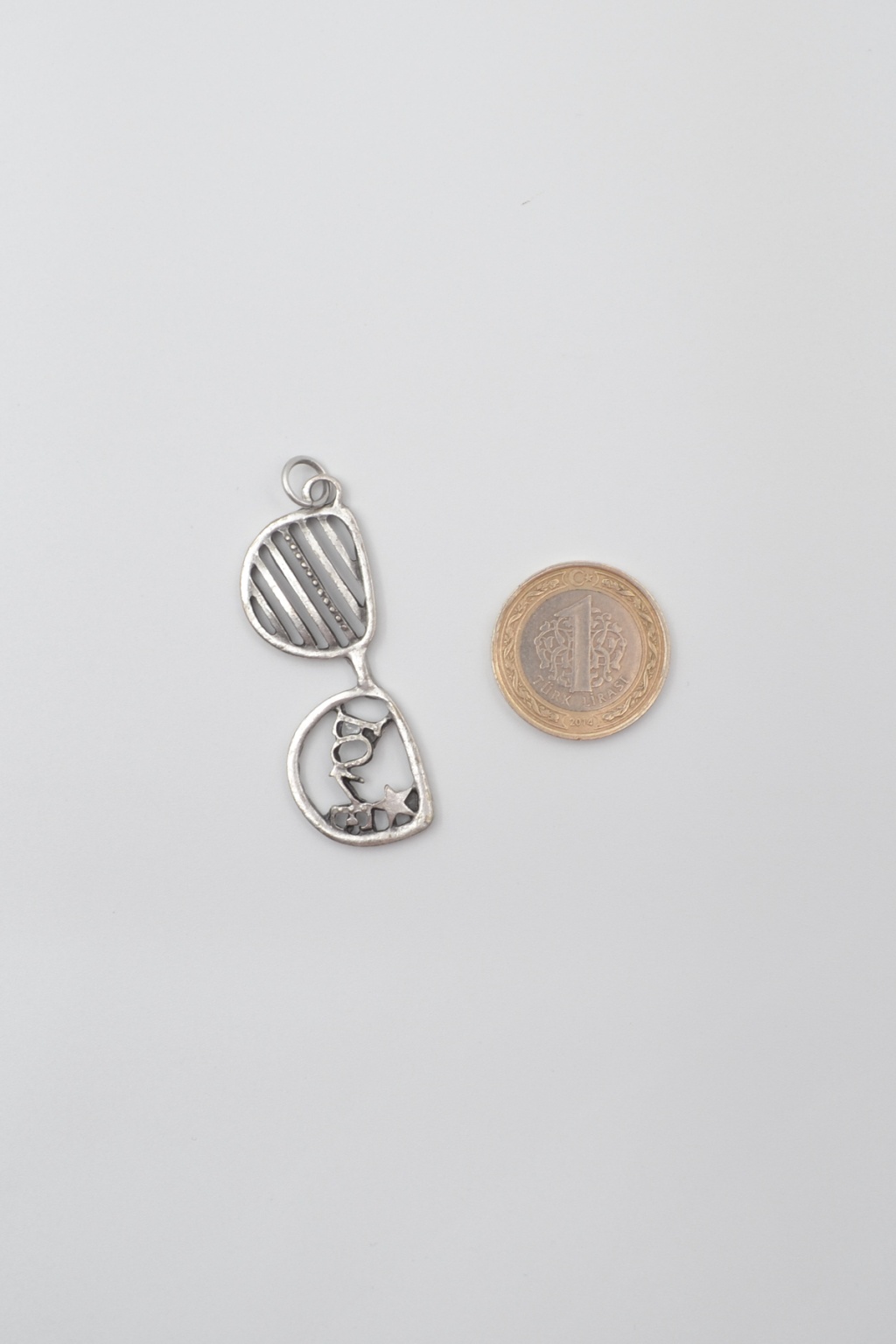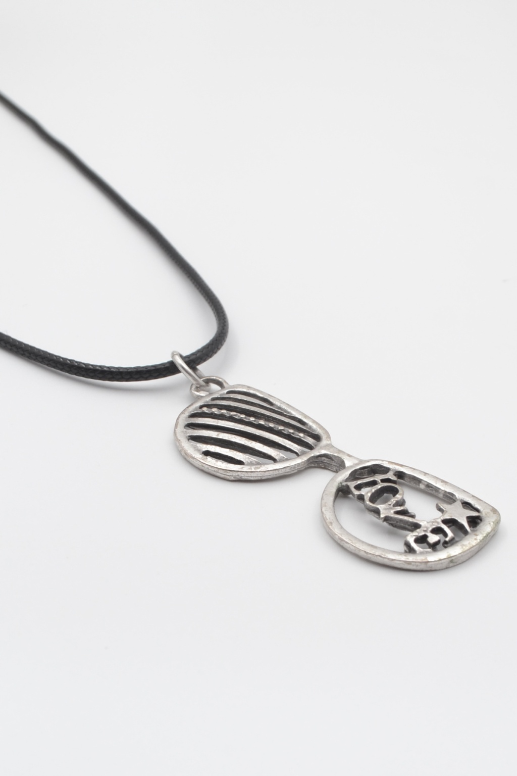 **Gözlük ve Love **, Siyah Deri İp Kolye ürün grubuna ait, Antik Gümüş Kaplama malzemeden üretilmiştir. Bu özel parça, 5,6 cm yüksekliğe ve 2 cm genişliğe sahiptir. Antik Gümüş Kaplama kaplaması ile göz alıcı bir görünüm sunar ve Unisex için tasarlanmıştır. 60 cm uzunluğundaki zinciriyle tamamlanmıştır.