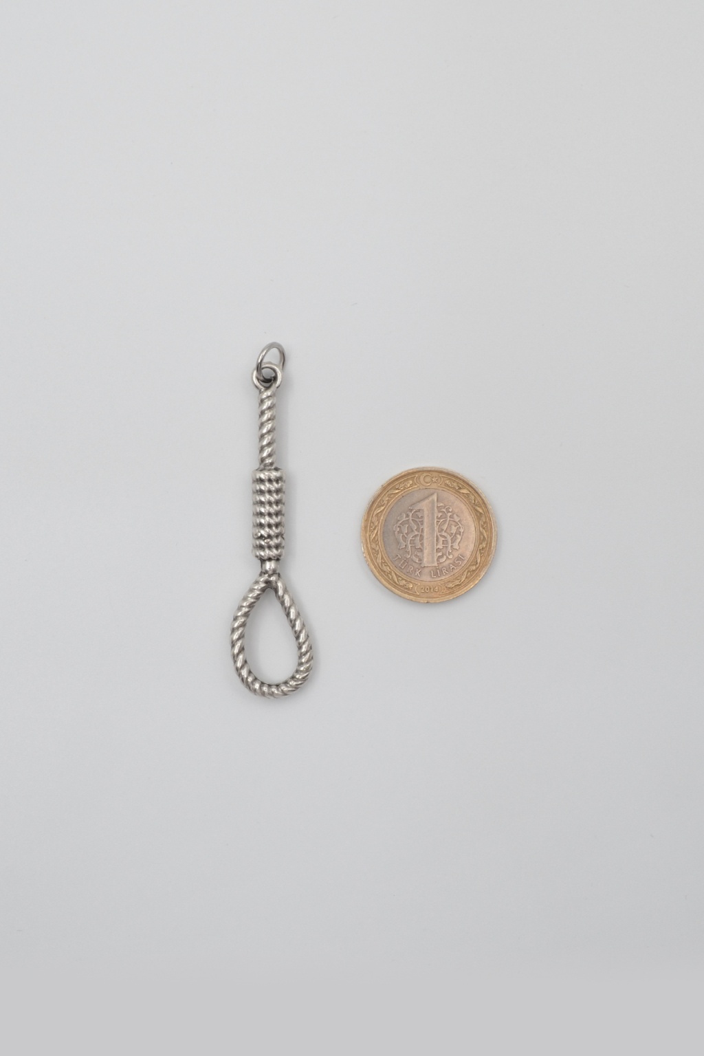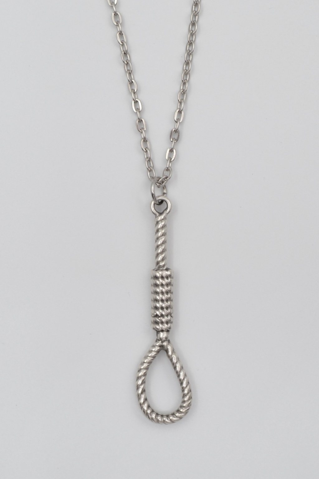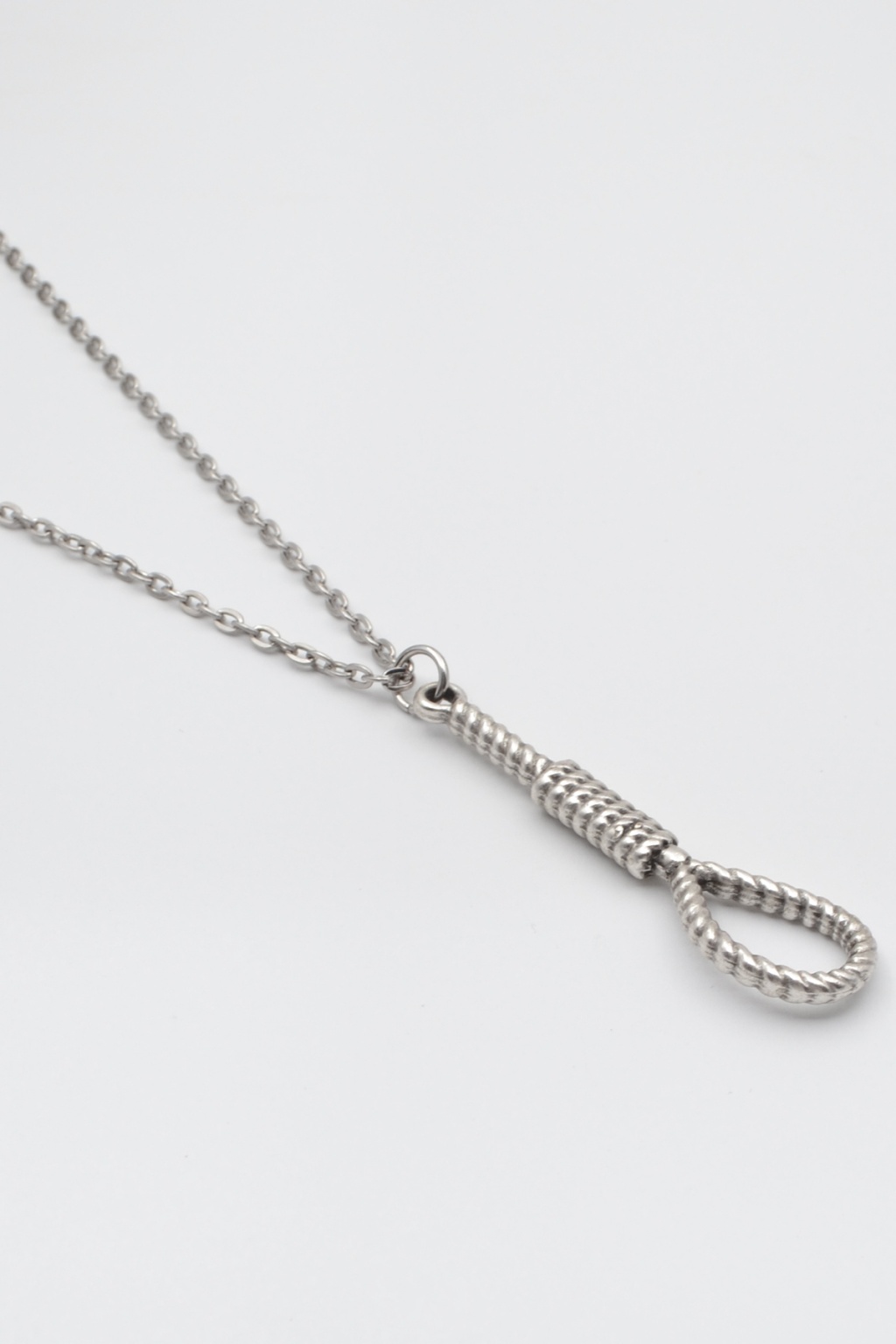 **Halat - Urgan - İdam Düğümü **, Düz Ezme Zincir Kolye ürün grubuna ait, Antik Gümüş Kaplama malzemeden üretilmiştir. Bu özel parça, 6,2 cm yüksekliğe ve 1,7 cm genişliğe sahiptir. Antik Gümüş Kaplama kaplaması ile göz alıcı bir görünüm sunar ve Unisex için tasarlanmıştır. 60 cm uzunluğundaki zinciriyle tamamlanmıştır.