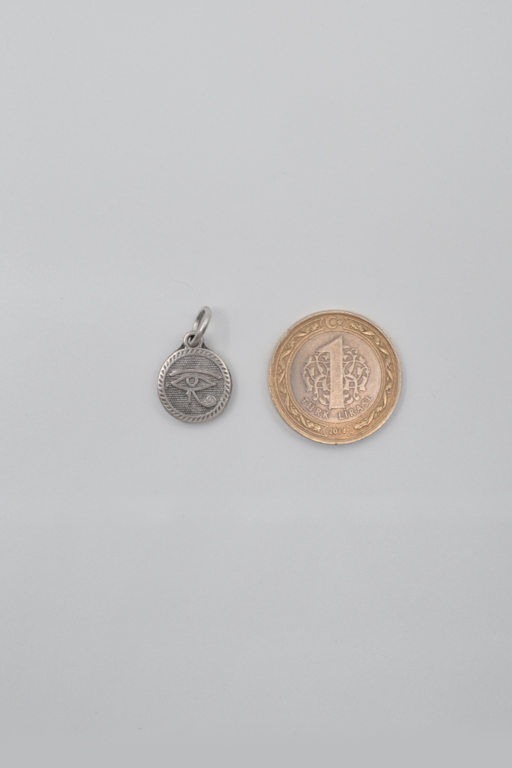 **Horus'un Gözü **, Örme Zincir Kolye ürün grubuna ait, Antik Gümüş Kaplama malzemeden üretilmiştir. Bu özel parça, 1,8 cm yüksekliğe ve 1,4 cm genişliğe sahiptir. Antik Gümüş Kaplama kaplaması ile göz alıcı bir görünüm sunar ve Unisex için tasarlanmıştır. 60 cm uzunluğundaki zinciriyle tamamlanmıştır.