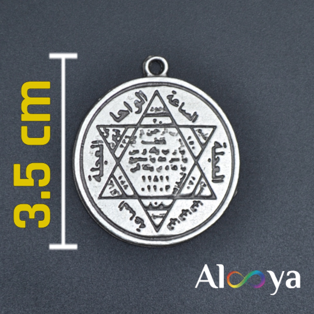 Alooya’nın mistik semboller koleksiyonundan Hz. Süleyman Mührü Kolyesi, tarih boyunca bilgelik, korunma ve ilahi gücün simgesi olarak bilinen kutsal sembolü modern bir dokunuşla sunuyor.Zamak malzemeden üretilen bu özel kolye ucu, Antik Gümüş Kaplamasıyla hem estetik hem de dayanıklı bir tasarım sunar.3,6 cm x 3,4 cm boyutları ve 9,44 gr ağırlığı ile karakterli bir duruş sergiler.Kolye ucu, 60 cm uzunluğunda ithal silver renk Düz Ezme Zincir ile tamamlanmıştır.Hem modern hem de klasik stillere kolayca uyum sağlayan bu aksesuar, unisex tasarımıyla kadın ve erkek kullanıcılar için mükemmel bir seçenektir.Günlük kullanımda sağlamlık, özel günlerde ise anlam dolu bir stil arayanlar için kusursuz bir parçadır.Koleksiyonunuza mistik bir ruh ve güçlü bir sembol ekleyin.