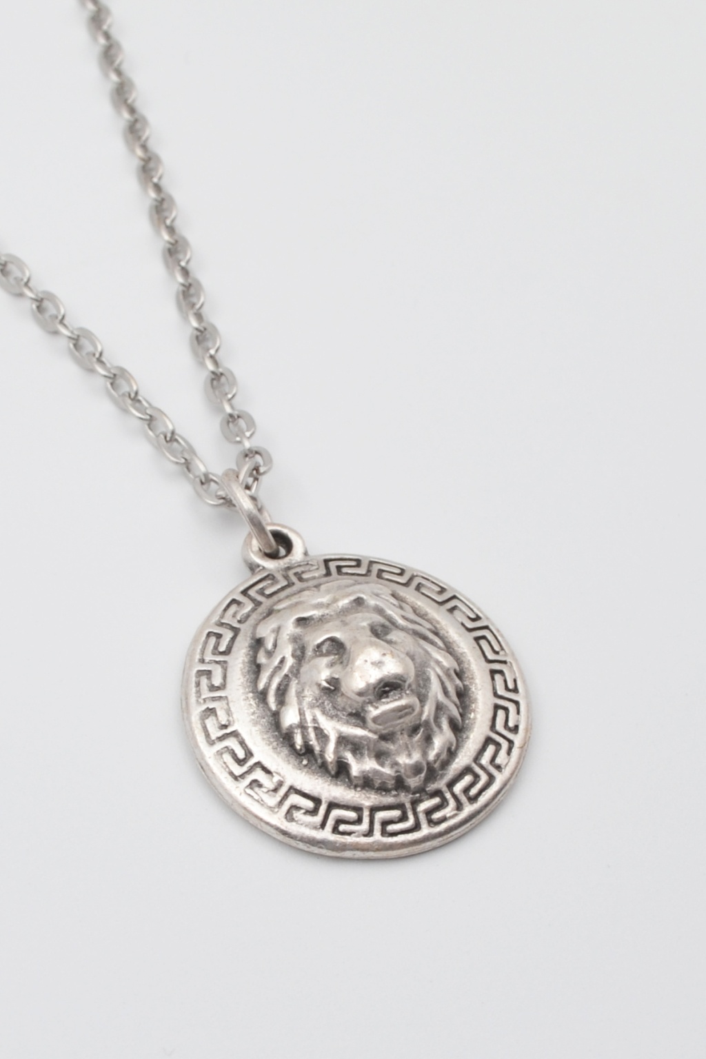 Aslanın Asaleti Modern Dokunuşla: Kabartmalı Aslan Madalyon Kolye (Düz Ezme İthal Zincirli)