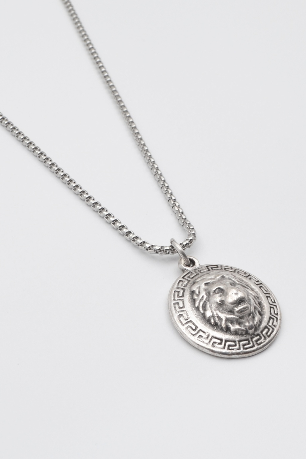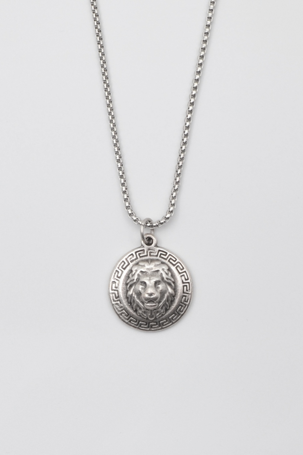 Kudretin ve Karizmanın İfadesi: Kabartmalı Aslan Madalyon Kolye (Örme İthal Zincirli)
