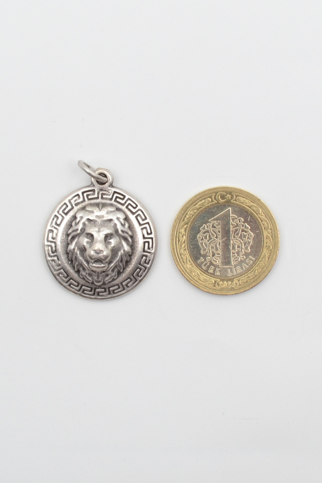 - Etkileyici Aslan Madalyon Tasarımı: Kabartmalı aslan kafası ve çevresindeki desenlerle zenginleştirilmiş madalyon formu.