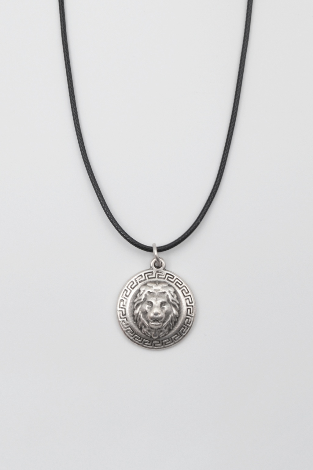 Gücün ve İhtişamın Sembolü: Kabartmalı Aslan Madalyon Kolye (PU Deri İp Zincirli)