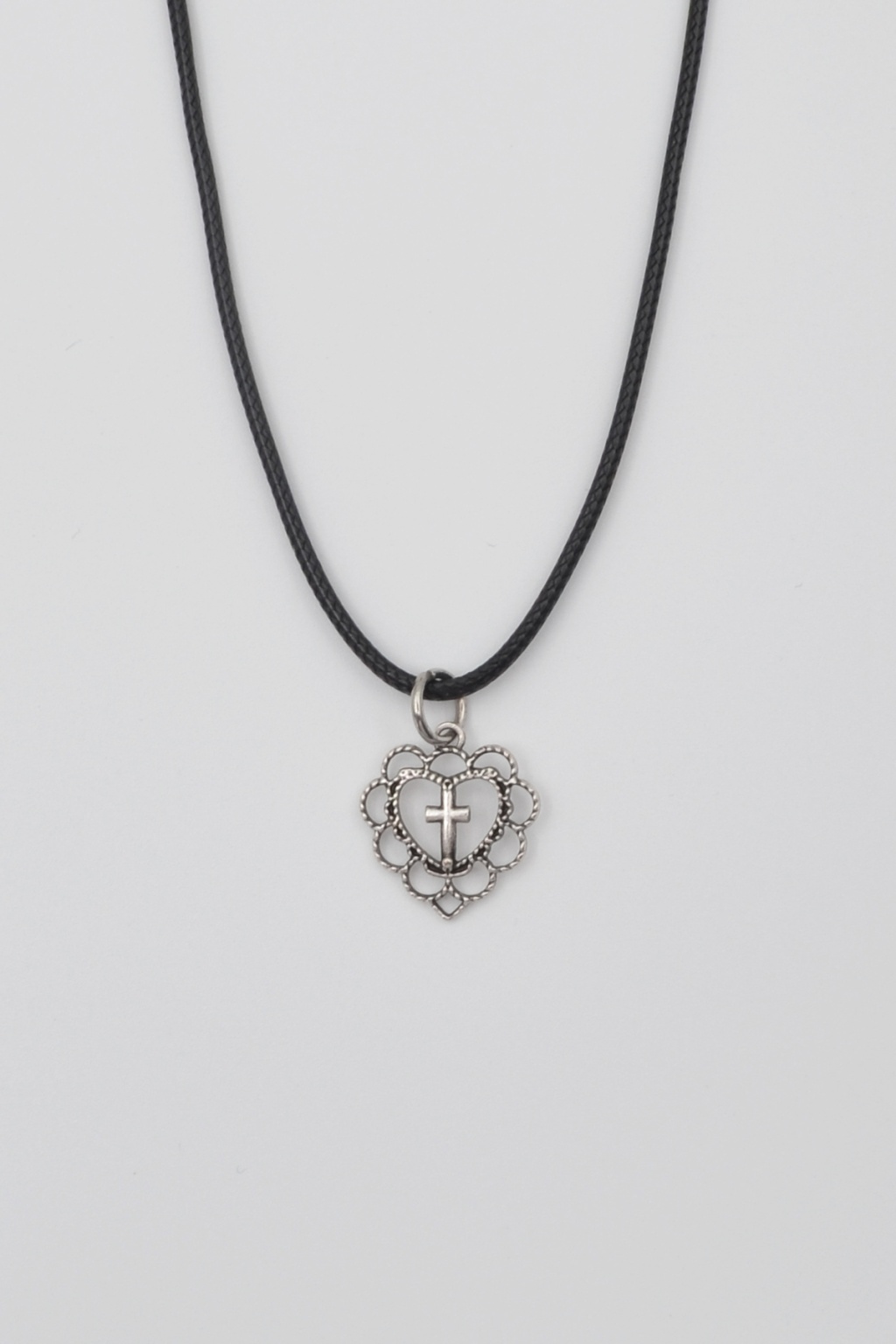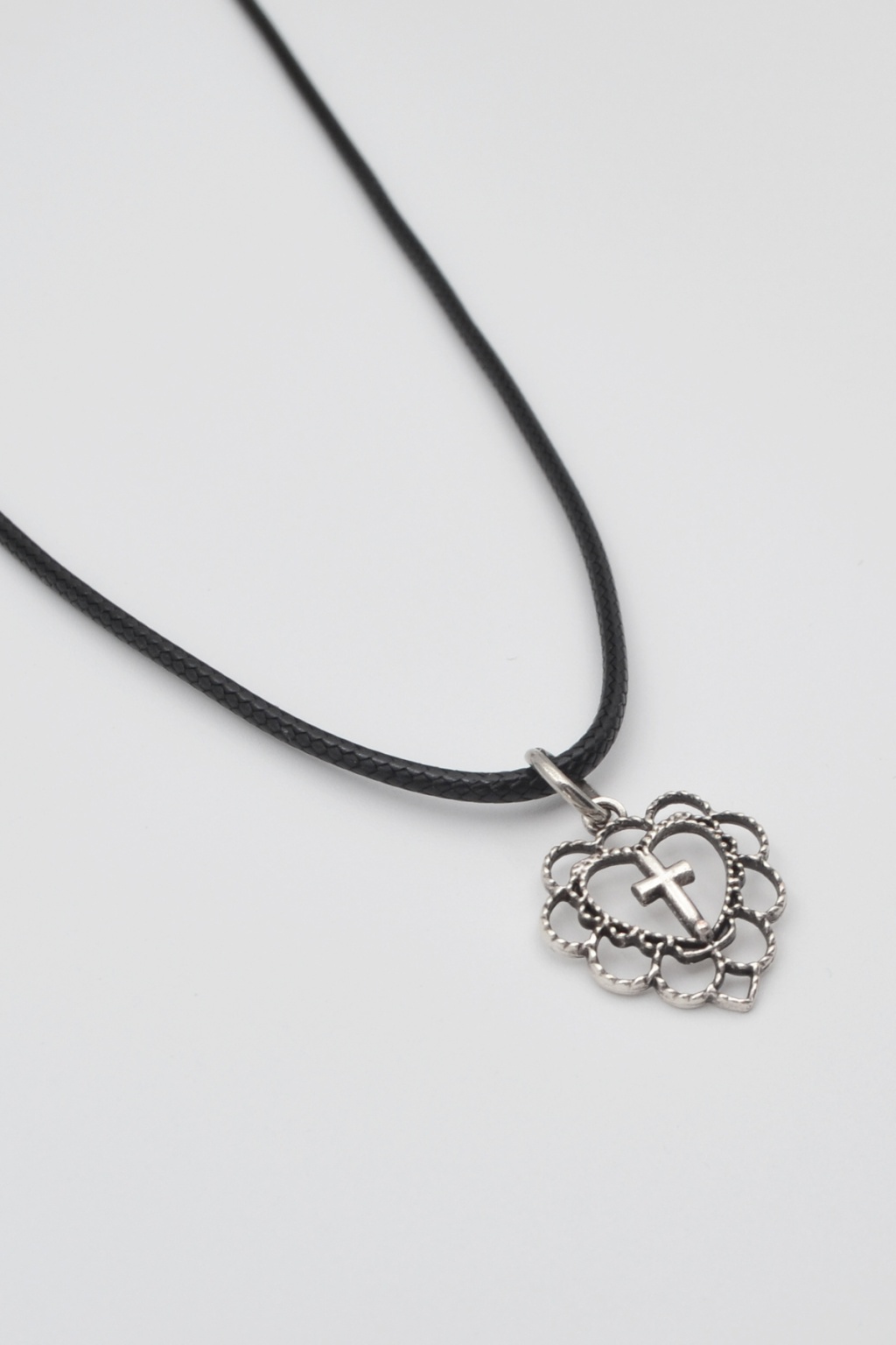 İnanç ve Sevginin Zarif Buluşması: Kalp ve Haç Motifli Kolye (PU Deri İp Zincirli)
