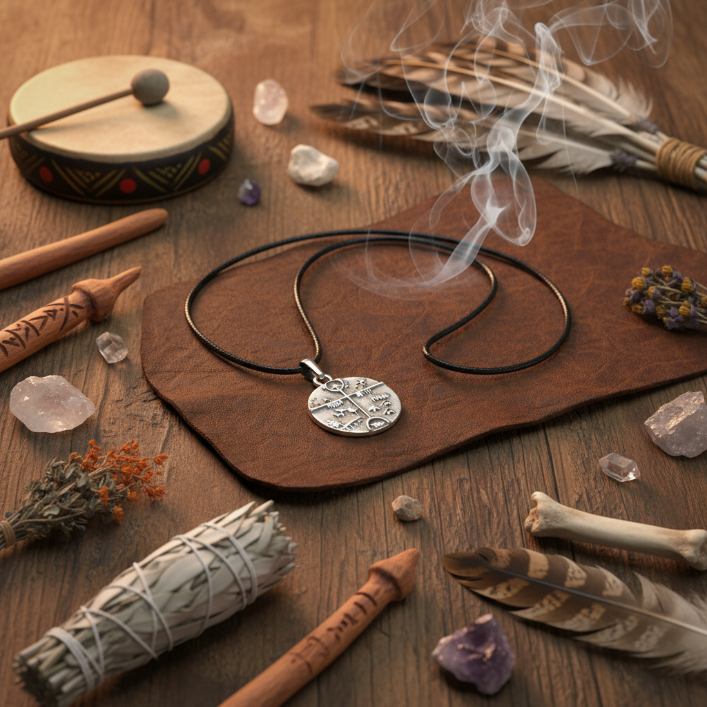 Alooya Türk Kam Şaman Davulu Kolyesi (Deri İp)