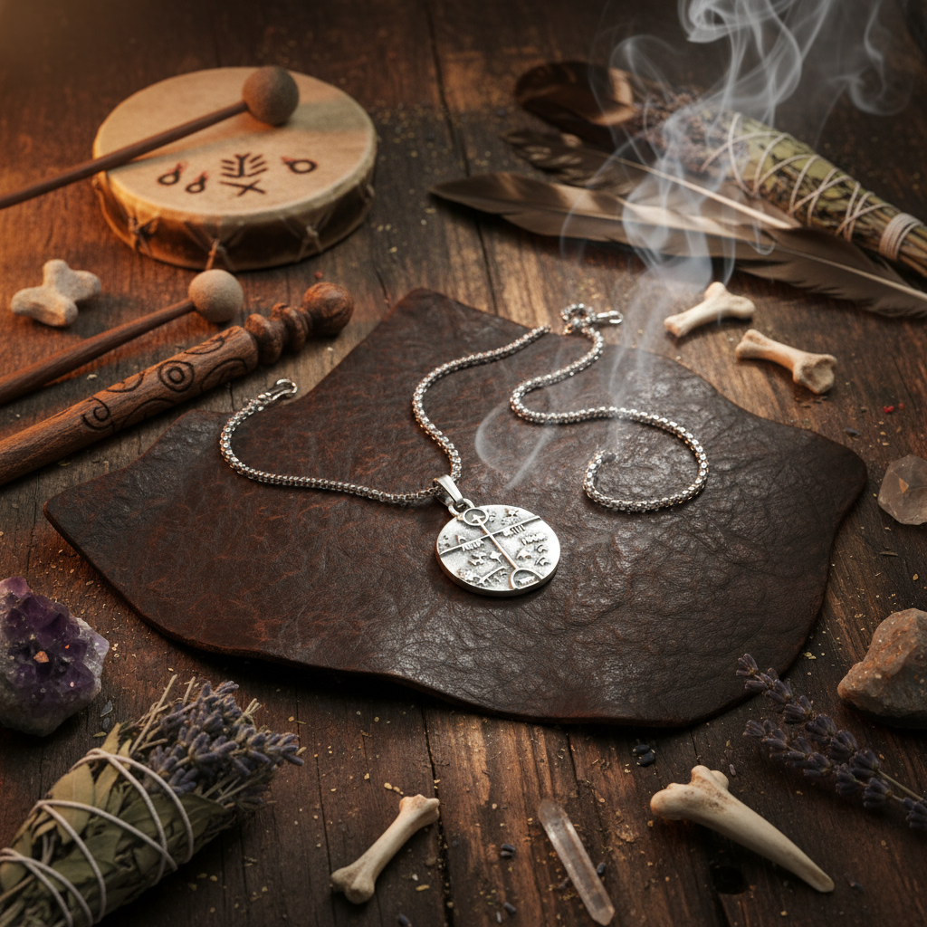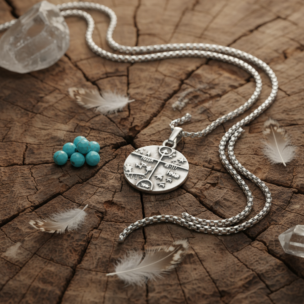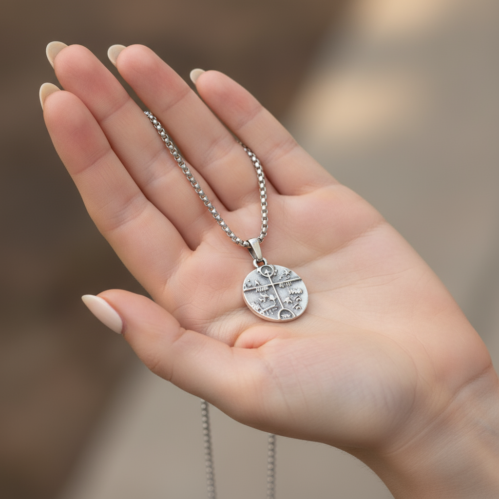 Kadim Türk inancının mistik sembollerinden biri… Kam Şaman Davulu, gök ile yer, ruh ile madde arasında köprü kuran “Kam”ların kutsal aracıdır. Kamlar, doğaüstü güçlerle iletişim kuran, ruhların rehberi ve koruyucusuydu. Bu kolye, o kadim bilgelikten ilham alarak modern bir tılsım haline getirildi. Zamak malzemeden üretilen Türk Kam Şaman Davulu Kolyesi, antik gümüş kaplaması sayesinde dayanıklılık ve mistik bir şıklık sunar. 2,8 x 2,4 cm boyutları ve 5,2 gram ağırlığındaki bu özel tasarım, 60 cm uzunluğunda ithal ÖRME zincir ile tamamlanır. Güçlü anlamı ve dikkat çekici detaylarıyla bu kolye, hem klasik hem modern tarzlara mükemmel uyum sağlar. Unisex tasarımıyla her tarza hitap eder; mistik ve spiritüel takıları sevenler için koleksiyonluk bir parçadır. Kadim bilgeliği üzerinde taşı, ruhunun gücünü hatırla.