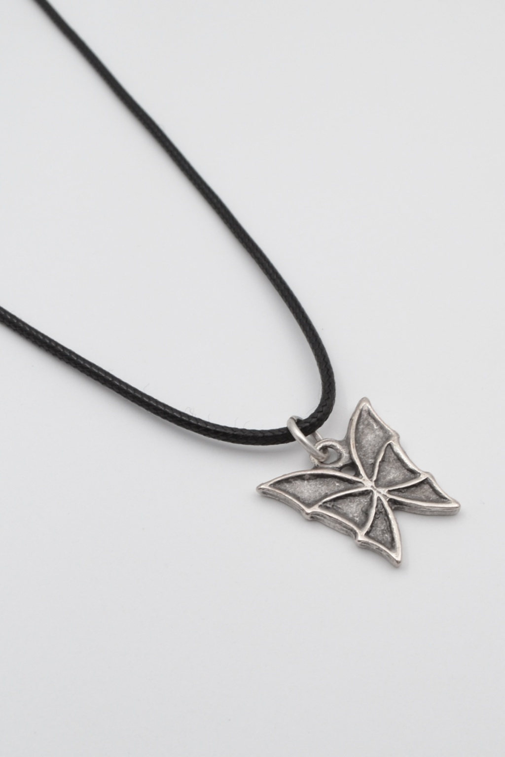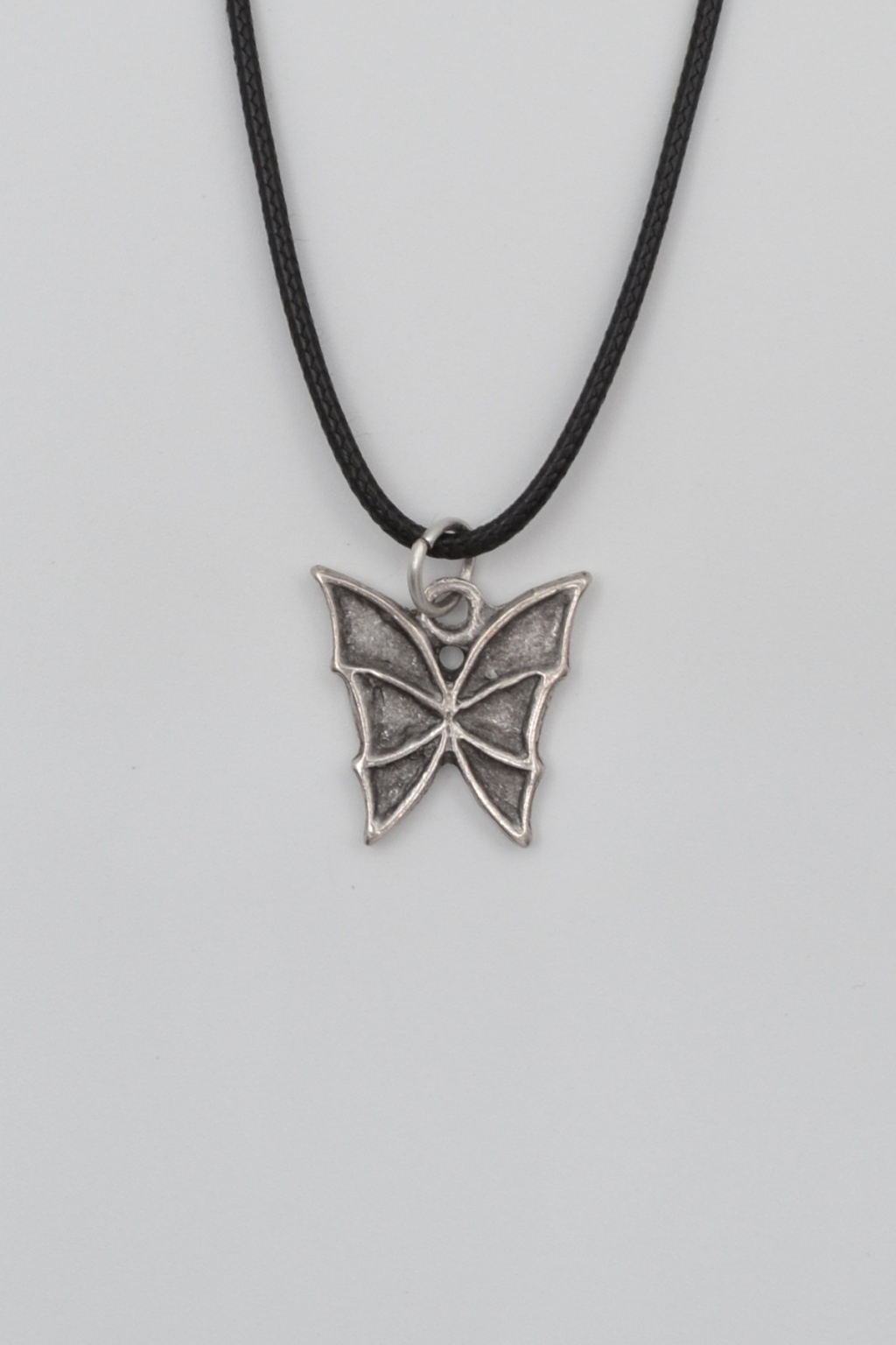 **Kelebek **, Siyah Deri İp Kolye ürün grubuna ait, Antik Gümüş Kaplama malzemeden üretilmiştir. Bu özel parça, 2,3 cm yüksekliğe ve 2,2 cm genişliğe sahiptir. Antik Gümüş Kaplama kaplaması ile göz alıcı bir görünüm sunar ve Unisex için tasarlanmıştır. 60 cm uzunluğundaki zinciriyle tamamlanmıştır.