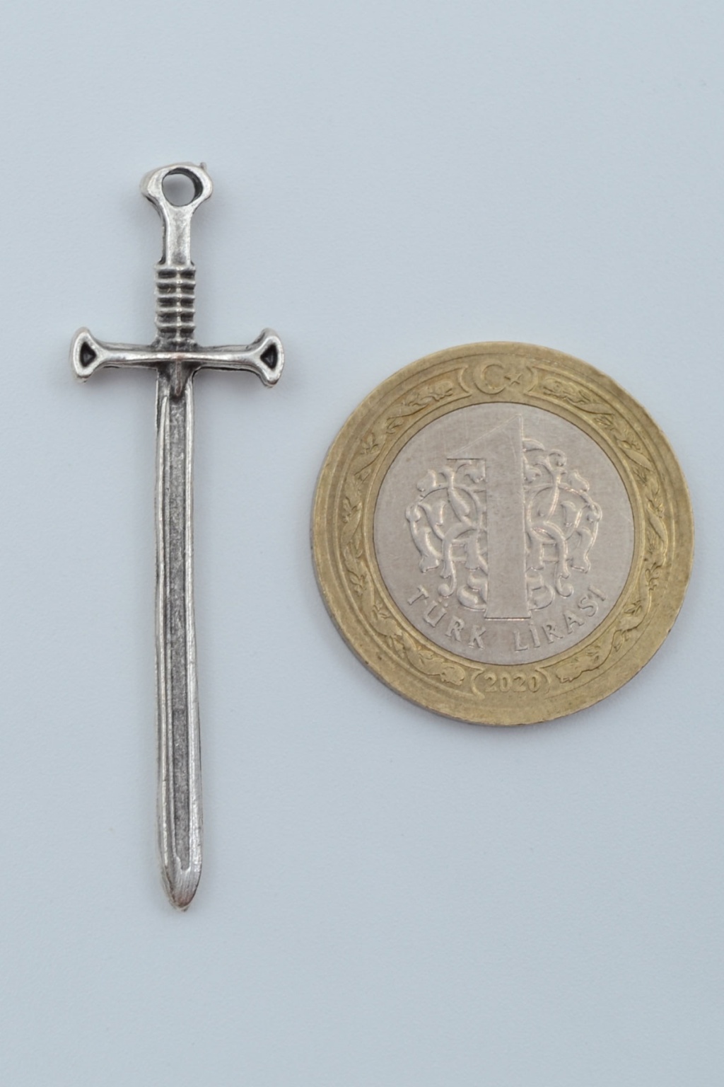 Zamak malzemeden üretilen bu Kılıç Kolye Ucu, Antik Gümüş Kaplamasıyla şıklık ve dayanıklılık sunar.5 cm x 1,4 cm boyutları ve 2 gr ağırlığıyla koleksiyonlar için özel bir parça olan tasarım, 60 cm uzunluğunda İthal Silver Renk Düz Ezme Zincir ile birlikte gelmektedir. Hem modern hem de klasik tarzlara uyum sağlayan bu kombinasyon, kullanıma hazır şık bir aksesuar olarak öne çıkıyor. Sağlam Düz Ezme Zincir yapısı ile günlük kullanımda pratiklik ve uzun ömürlülük vadeden bu set, hem erkek hem de kadın takı severler için ideal bir seçimdir.
