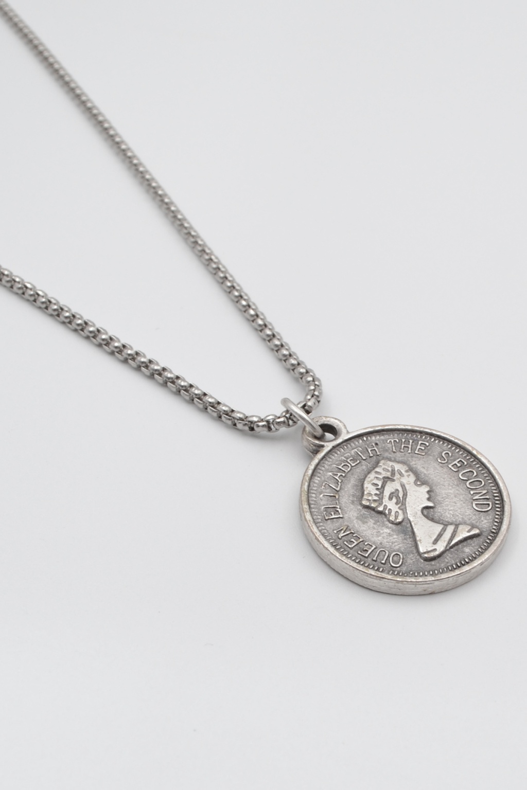**Kraliçe Elizabeth II (Genç Portre) **, Örme Zincir Kolye ürün grubuna ait, Antik Gümüş Kaplama malzemeden üretilmiştir. Bu özel parça, 3,3 cm yüksekliğe ve 2,7 cm genişliğe sahiptir. Antik Gümüş Kaplama kaplaması ile göz alıcı bir görünüm sunar ve Unisex için tasarlanmıştır. 60 cm uzunluğundaki zinciriyle tamamlanmıştır.