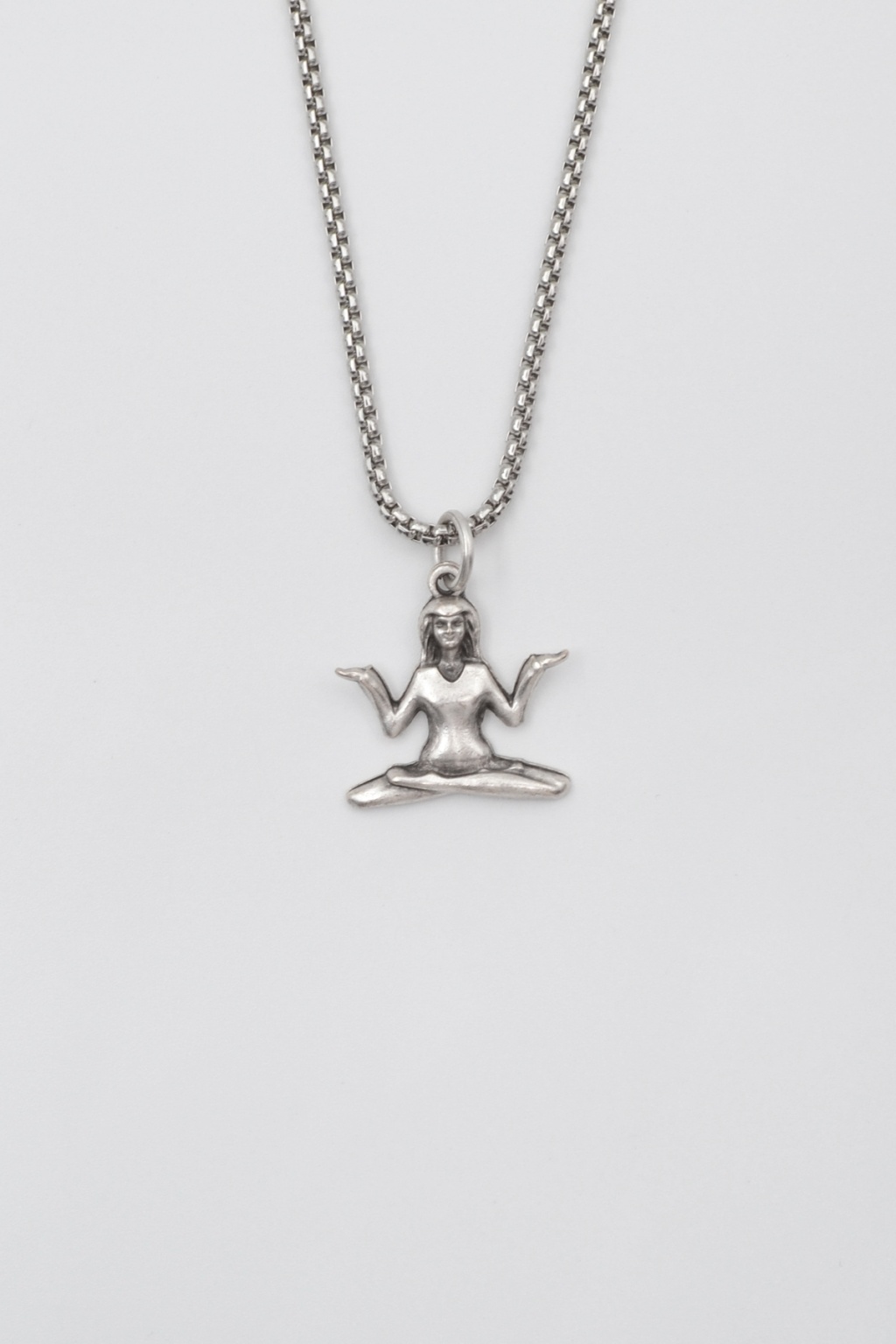 **Meditasyon - Yoga - Ruhani - **, Örme Zincir Kolye ürün grubuna ait, Antik Gümüş Kaplama malzemeden üretilmiştir. Bu özel parça, 2,4 cm yüksekliğe ve 2,4 cm genişliğe sahiptir. Antik Gümüş Kaplama kaplaması ile göz alıcı bir görünüm sunar ve Unisex için tasarlanmıştır. 60 cm uzunluğundaki zinciriyle tamamlanmıştır.