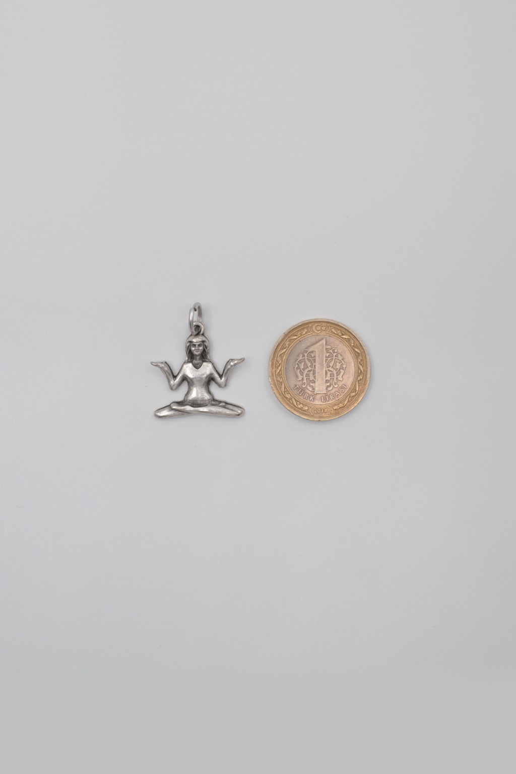 **Meditasyon - Yoga - Ruhani - **, Siyah Deri İp Kolye ürün grubuna ait, Antik Gümüş Kaplama malzemeden üretilmiştir. Bu özel parça, 2,4 cm yüksekliğe ve 2,4 cm genişliğe sahiptir. Antik Gümüş Kaplama kaplaması ile göz alıcı bir görünüm sunar ve Unisex için tasarlanmıştır. 60 cm uzunluğundaki zinciriyle tamamlanmıştır.