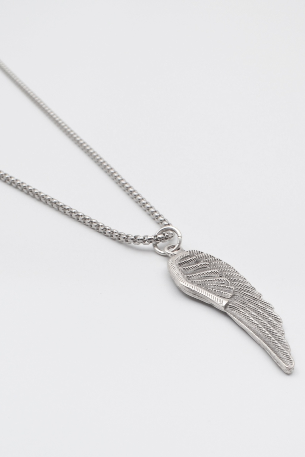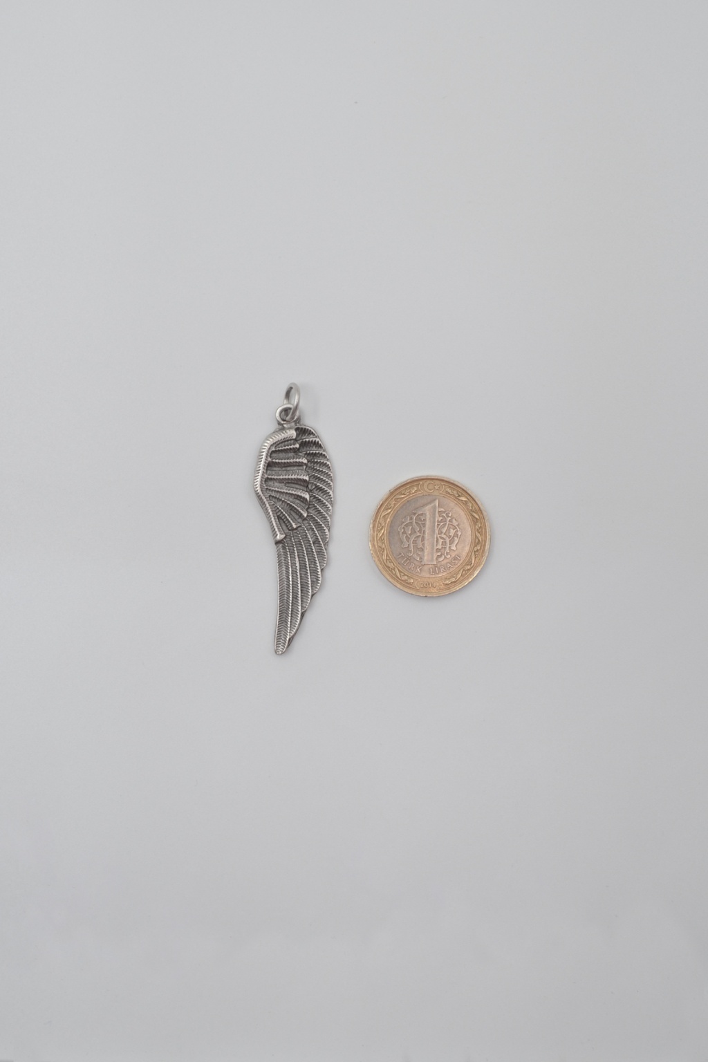 **Melek Kanadı **, Örme Zincir Kolye ürün grubuna ait, Antik Gümüş Kaplama malzemeden üretilmiştir. Bu özel parça, 5,4 cm yüksekliğe ve 1,8 cm genişliğe sahiptir. Antik Gümüş Kaplama kaplaması ile göz alıcı bir görünüm sunar ve Unisex için tasarlanmıştır. 60 cm uzunluğundaki zinciriyle tamamlanmıştır.