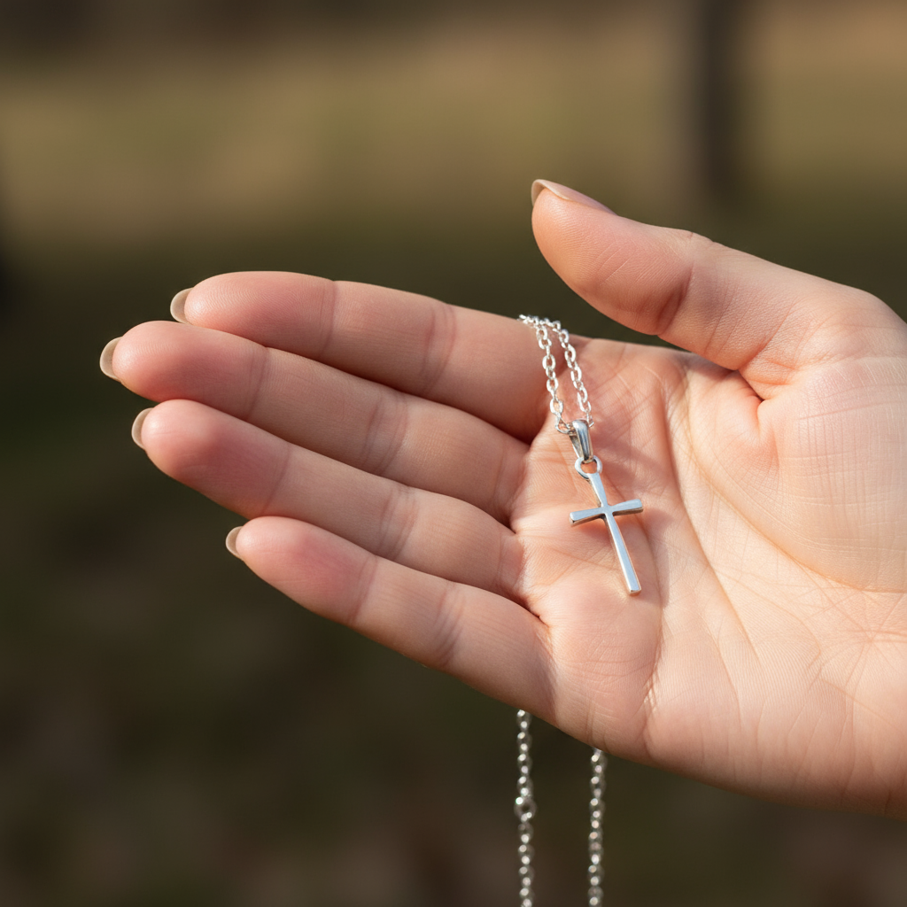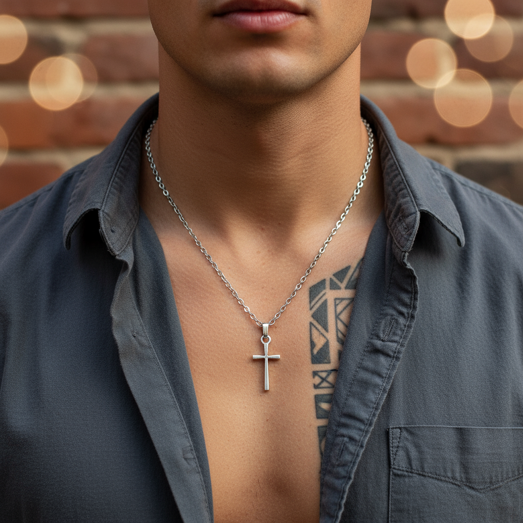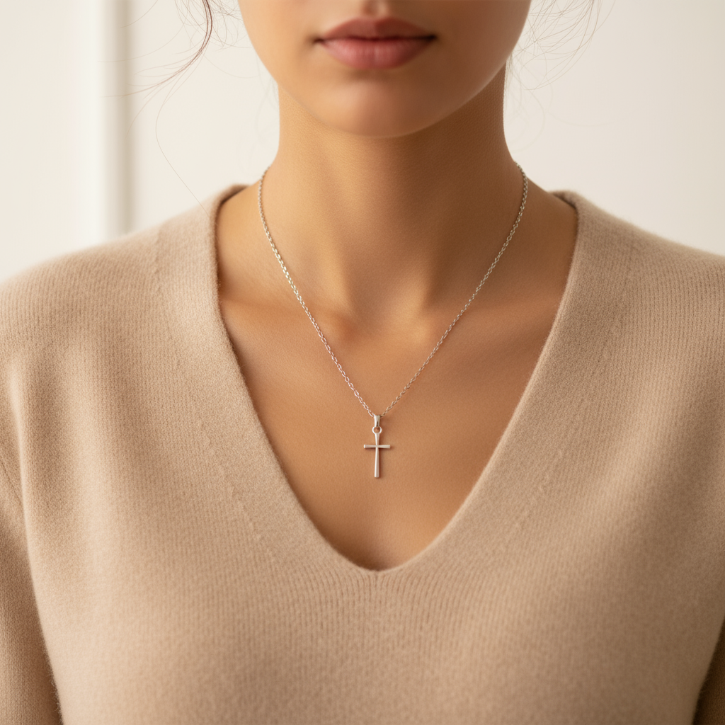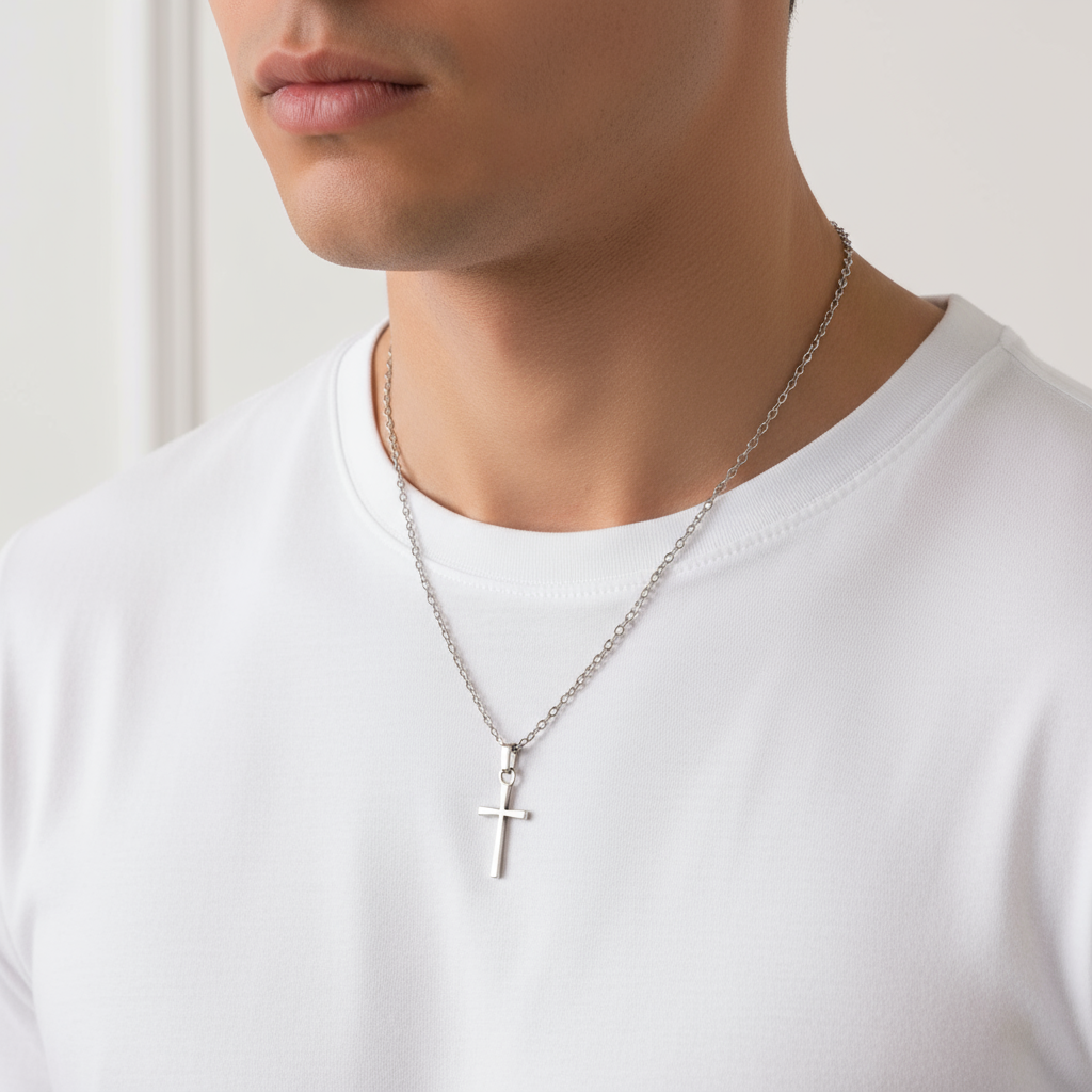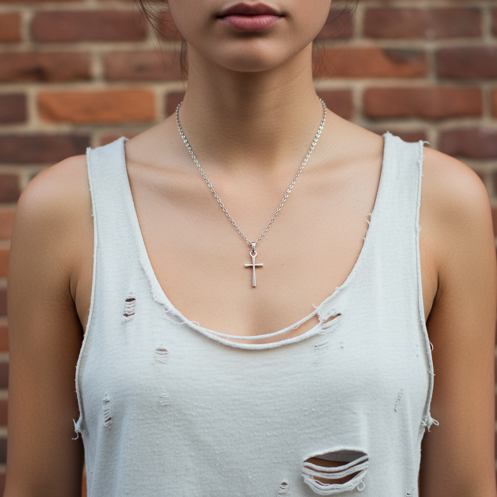 Alooya Mini Haç Kolyesi (Düz Zincir) Zarif, minimal ve anlam dolu bir tasarım… Mini Haç Kolyesi, sade çizgileriyle hem klasik hem de modern tarzı bir araya getiriyor. İnce işçiliği ve zamansız duruşuyla bu parça, ruhani bir anlam taşırken şıklığınızdan da ödün vermez. Zamak malzemeden üretilen kolye ucu, antik gümüş kaplaması sayesinde uzun ömürlü bir parlaklık ve dayanıklılık sunar. 3 cm x 1,5 cm ölçülerinde ve 1,37 gram ağırlığındaki bu zarif tasarım, 60 cm uzunluğunda ithal silver renk düz ezme zincir ile birlikte kullanıma hazırdır. Hafif yapısı ve minimalist tasarımıyla günlük kullanıma uygun olan bu özel aksesuar, unisex tarzıyla hem kadın hem erkek takı severlerin koleksiyonunda yerini almaya hazır. Ruhani bir simge, modern bir şıklık.