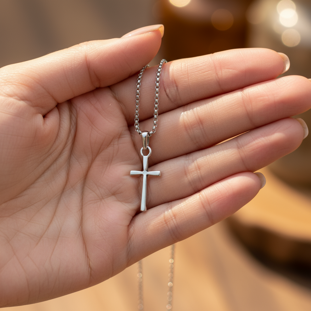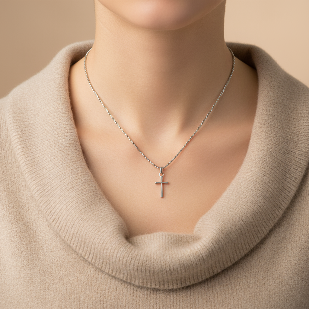 Alooya Mini Haç Kolyesi (Örme Zincir)