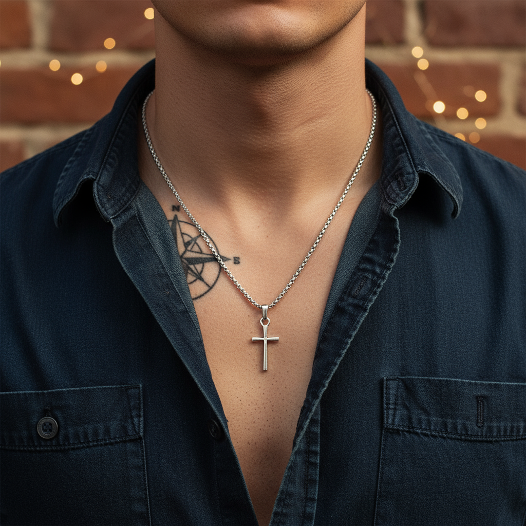 Zarif, minimal ve anlam dolu bir tasarım… Mini Haç Kolyesi, sade çizgileriyle hem klasik hem de modern tarzı bir araya getiriyor. İnce işçiliği ve zamansız duruşuyla bu parça, ruhani bir anlam taşırken şıklığınızdan da ödün vermez. Zamak malzemeden üretilen kolye ucu, antik gümüş kaplaması sayesinde uzun ömürlü bir parlaklık ve dayanıklılık sunar. 3 cm x 1,5 cm ölçülerinde ve 1,37 gram ağırlığındaki bu zarif tasarım, 60 cm uzunluğunda ithal silver ÖRME ezme zincir ile birlikte kullanıma hazırdır. Hafif yapısı ve minimalist tasarımıyla günlük kullanıma uygun olan bu özel aksesuar, unisex tarzıyla hem kadın hem erkek takı severlerin koleksiyonunda yerini almaya hazır. Ruhani bir simge, modern bir şıklık.