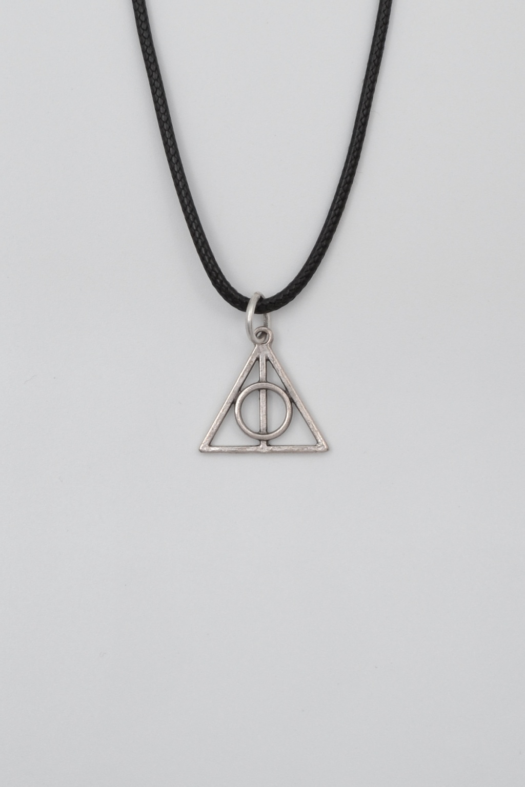 **Minimal Harry Potter Ölüm Yadigarları **, Siyah Deri İp Kolye ürün grubuna ait, Antik Gümüş Kaplama malzemeden üretilmiştir. Bu özel parça, 2 cm yüksekliğe ve 2 cm genişliğe sahiptir. Antik Gümüş Kaplama kaplaması ile göz alıcı bir görünüm sunar ve Unisex için tasarlanmıştır. 60 cm uzunluğundaki zinciriyle tamamlanmıştır.