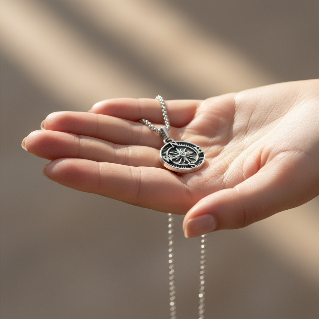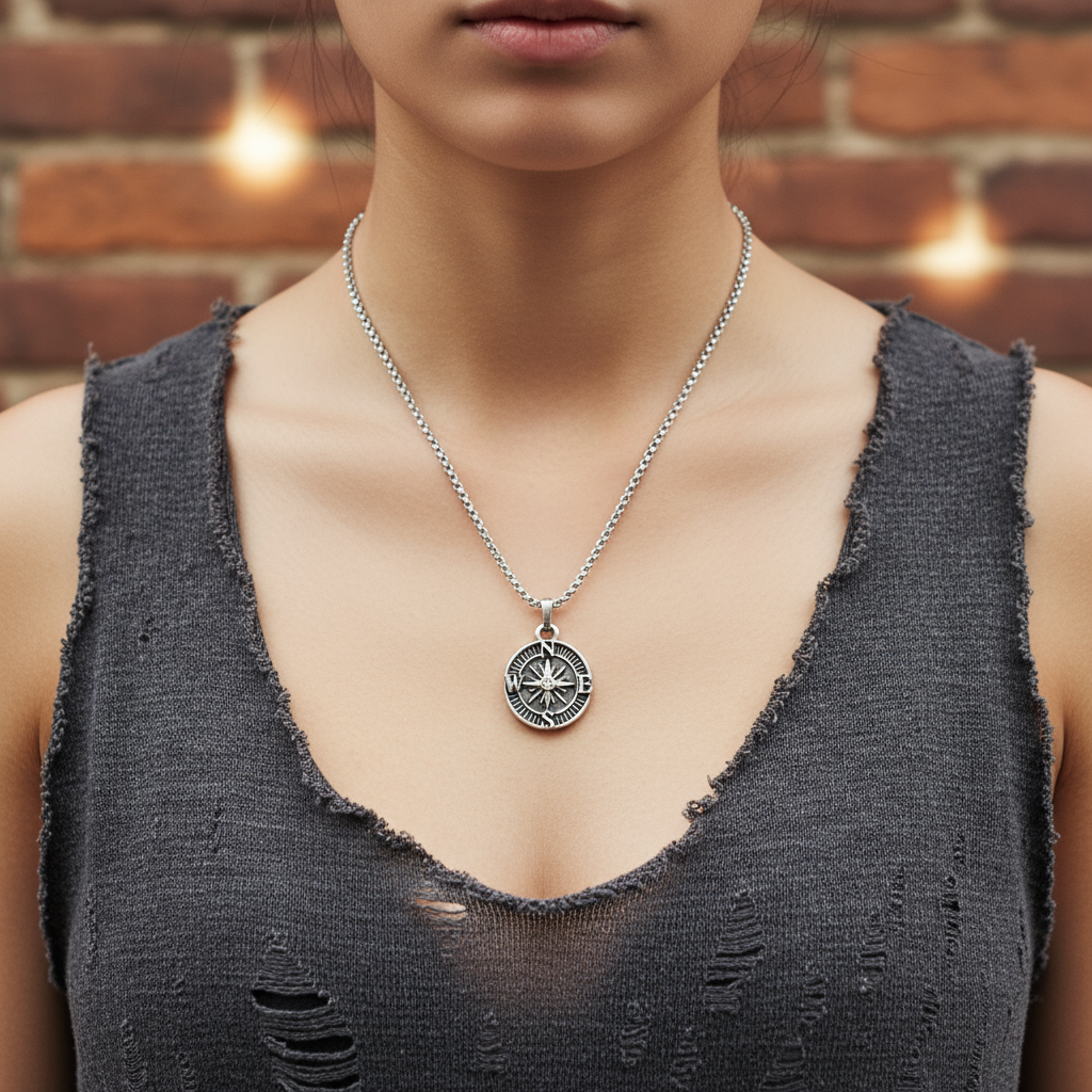 Yolunu arayanlara, yönünü bilenlere ve hayatında daima keşfetmeyi sevenlere özel bir tasarım.Alooya Minimal Pusula Kolyesi – antik gümüş dokusuyla zarafet, cesaret ve macera duygusunu bir araya getiriyor. Zamak malzemeden üretilen bu özel kolye ucu, Antik Gümüş Kaplamasıyla uzun ömürlü dayanıklılık sunarken zamansız bir şıklık kazandırır. 2,9 cm x 2,4 cm boyutlarında ve 5,79 gram ağırlığında olan bu özgün tasarım, 60 cm uzunluğunda İthal Silver Renk Örme Zincir ile birlikte kullanıma hazır olarak sunulmaktadır. Klasik ve modern tarzı aynı potada eriten bu kombinasyon, günlük kullanıma uygun yapısıyla hem kadın hem erkek takı severlerin favorisi olmaya aday.Hayatta yönünüzü bulmak, tarzınızı yansıtmak ve güçlü bir sembol taşımak isteyenler için Minimal Pusula Kolyesi, Alooya kalitesiyle şimdi sizlerle.