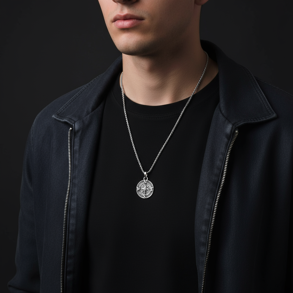 Alooya Minimal Pusula Gümüş Kolyesi (Örme Zincir)
