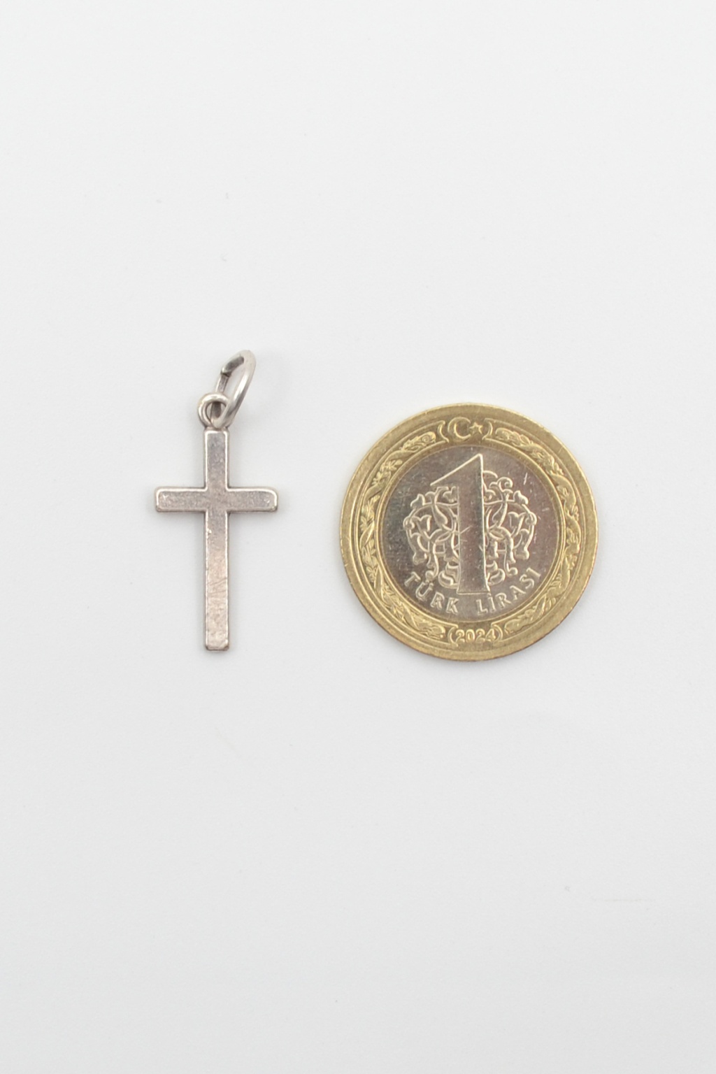 Zamak malzemeden üretilen bu Minimalist Haç Figürlü Tasarımı, Antik Gümüş Kaplamasıyla şıklık ve dayanıklılık sunar.2,6 cm x 1,7 cm boyutları ve 0,88 gram ağırlığıyla koleksiyonlar için iadel bir parçadır.