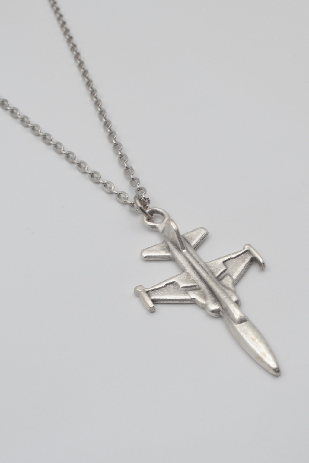 Çağdaş ve Güçlü: F-5 Tiger Savaş Uçağı Kolye (Düz Ezme İthal Zincirli)