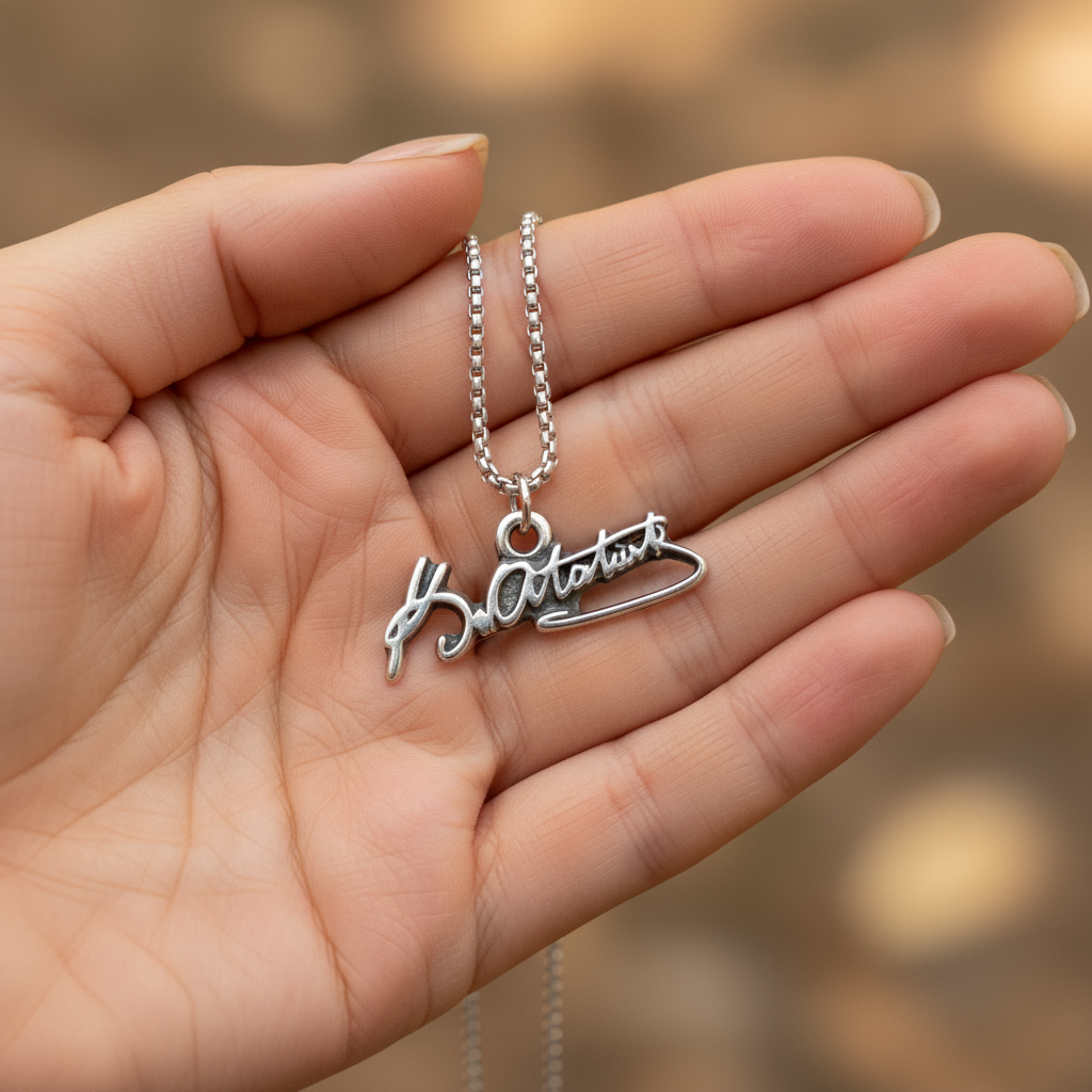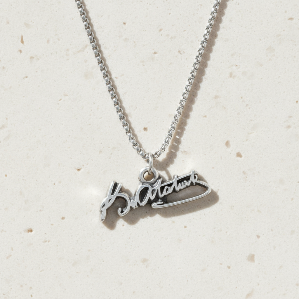 Alooya Mustafa Kemal Atatürk İmzalı Kolye (Örme Zincir)