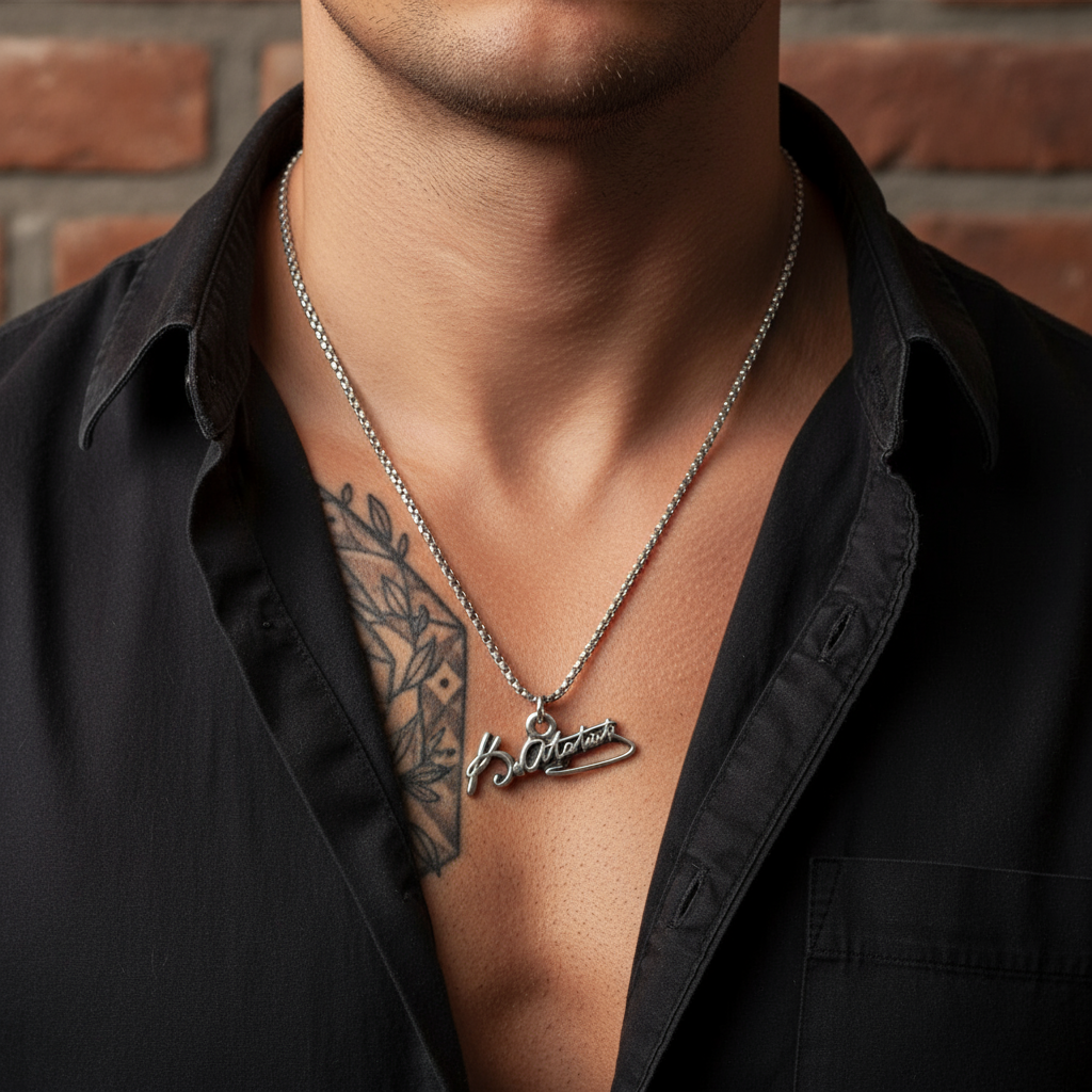 Alooya Mustafa Kemal Atatürk İmzalı Kolyesi, Atamızın kurucusunun unutulmaz imzasını zarif bir takı formunda taşıyor. Antik gümüş kaplaması, zamansız şıklığı ve anlamlı tasarımıyla özel bir parça olarak öne çıkıyor.Zamak malzemeden üretilen kolye ucu 1,5 cm x 4 cm boyutlarındadır ve 3,83 gram ağırlığındadır. 60 cm uzunluğundaki ithal silver renk ÖRME zincir seçeneği ile sunulur. Unisex yapısı sayesinde hem kadın hem erkek kullanıcılar için idealdir. Dayanıklı zincir yapısı, uzun ömürlü ve konforlu bir kullanım sağlar.