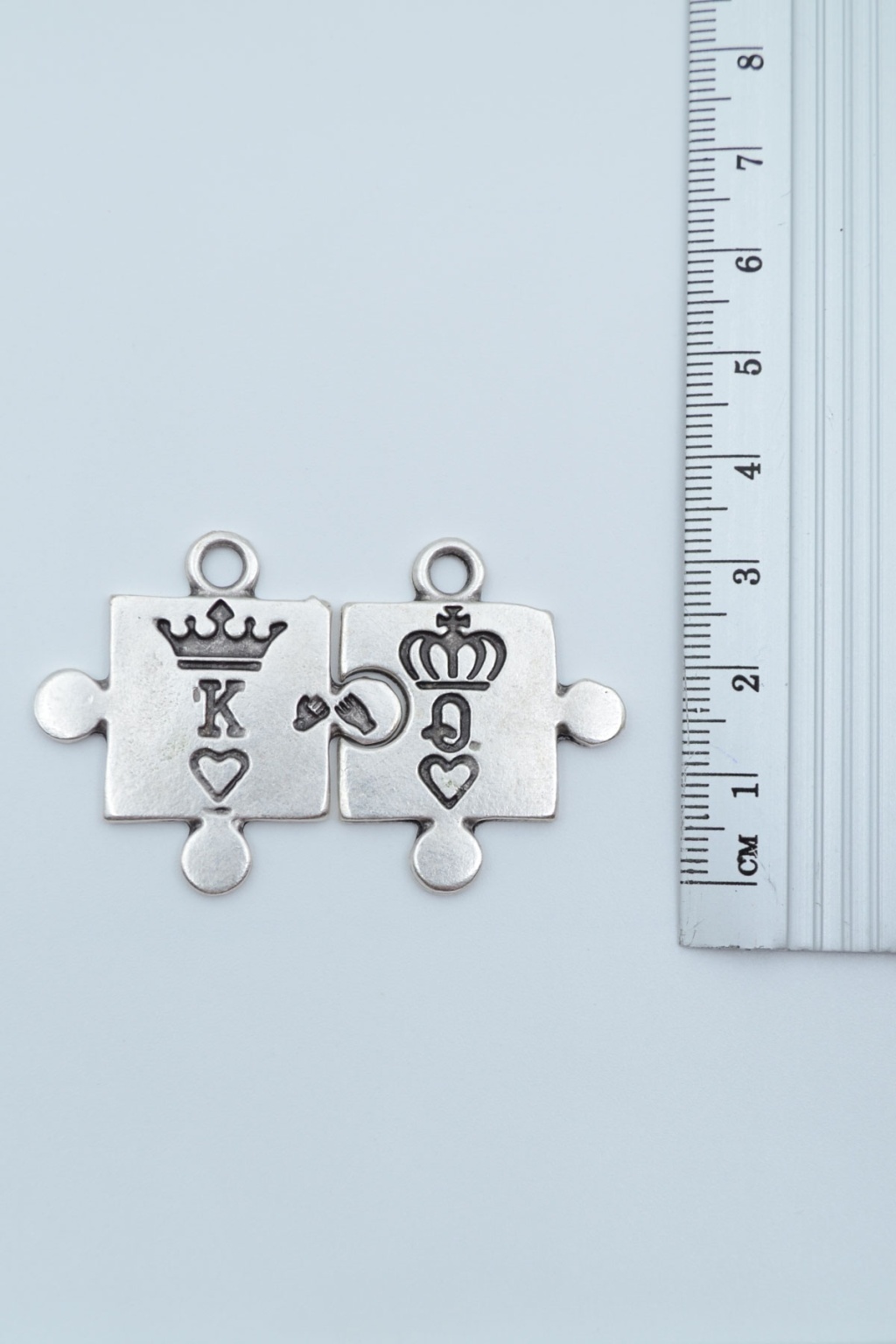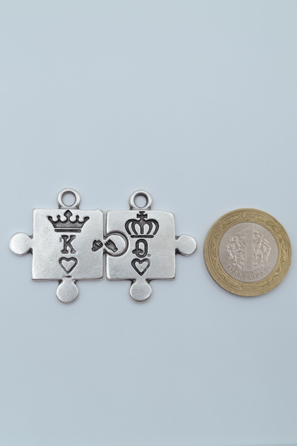Zamak malzemeden üretilen bu Puzzle - Queen - King - Sevgili Kolye Ucu, Antik Gümüş Kaplamasıyla şıklık ve dayanıklılık sunar.3,5 cm x 3,5 cm boyutları ve 11,83 gr ağırlığıyla koleksiyonlar için özel bir parça olan tasarım, 60 cm uzunluğunda İthal Silver Renk Düz Ezme Zincir ile birlikte gelmektedir. Hem modern hem de klasik tarzlara uyum sağlayan bu kombinasyon, kullanıma hazır şık bir aksesuar olarak öne çıkıyor. Sağlam Düz Ezme Zincir yapısı ile günlük kullanımda pratiklik ve uzun ömürlülük vadeden bu set, hem erkek hem de kadın takı severler için ideal bir seçimdir.