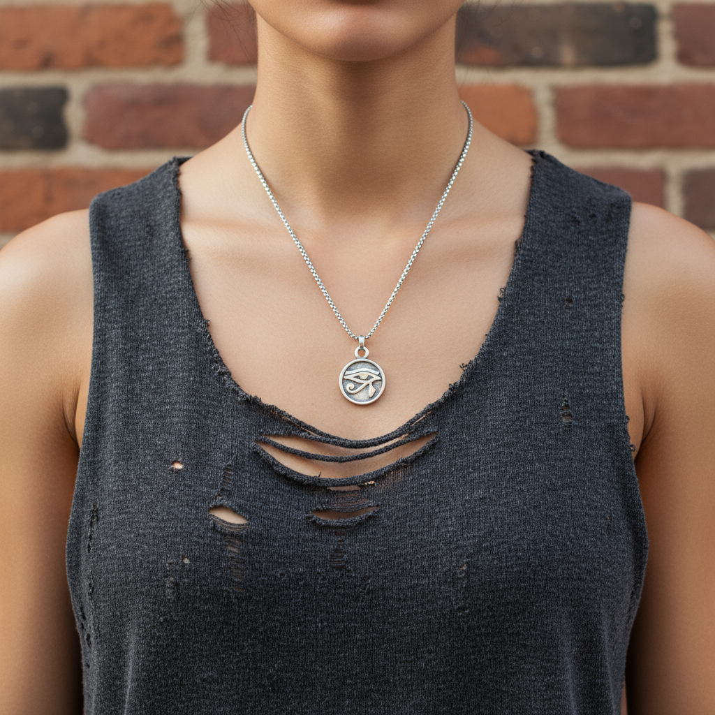 Alooya Yüce Güneş Tanrısı Ra’nın Gözü Kolyesi (Örme Zincir)